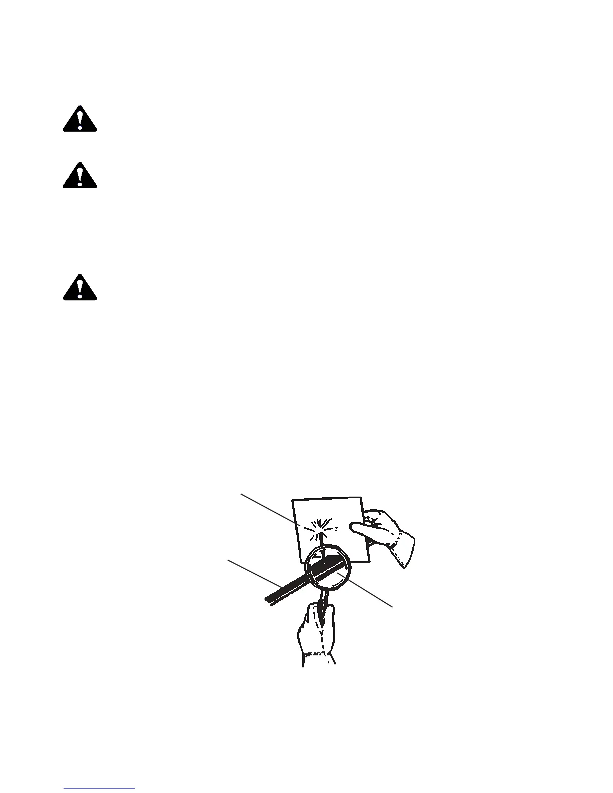 • Wear safety glasses, protective clothing, and use a sound piece of cardboard or