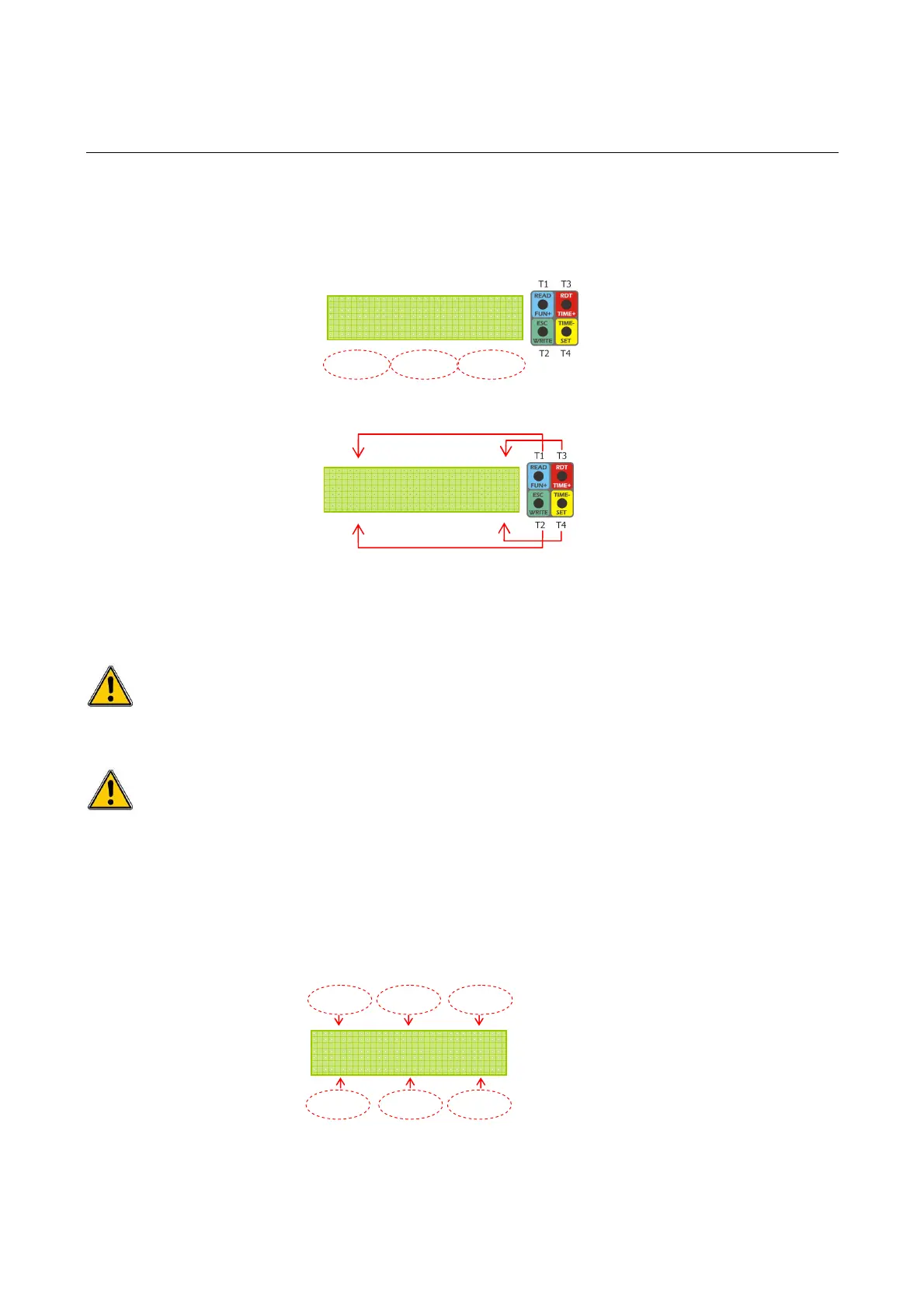 2. press and hold T1 (READ) until the intervals programmed for the 6 functions appear on