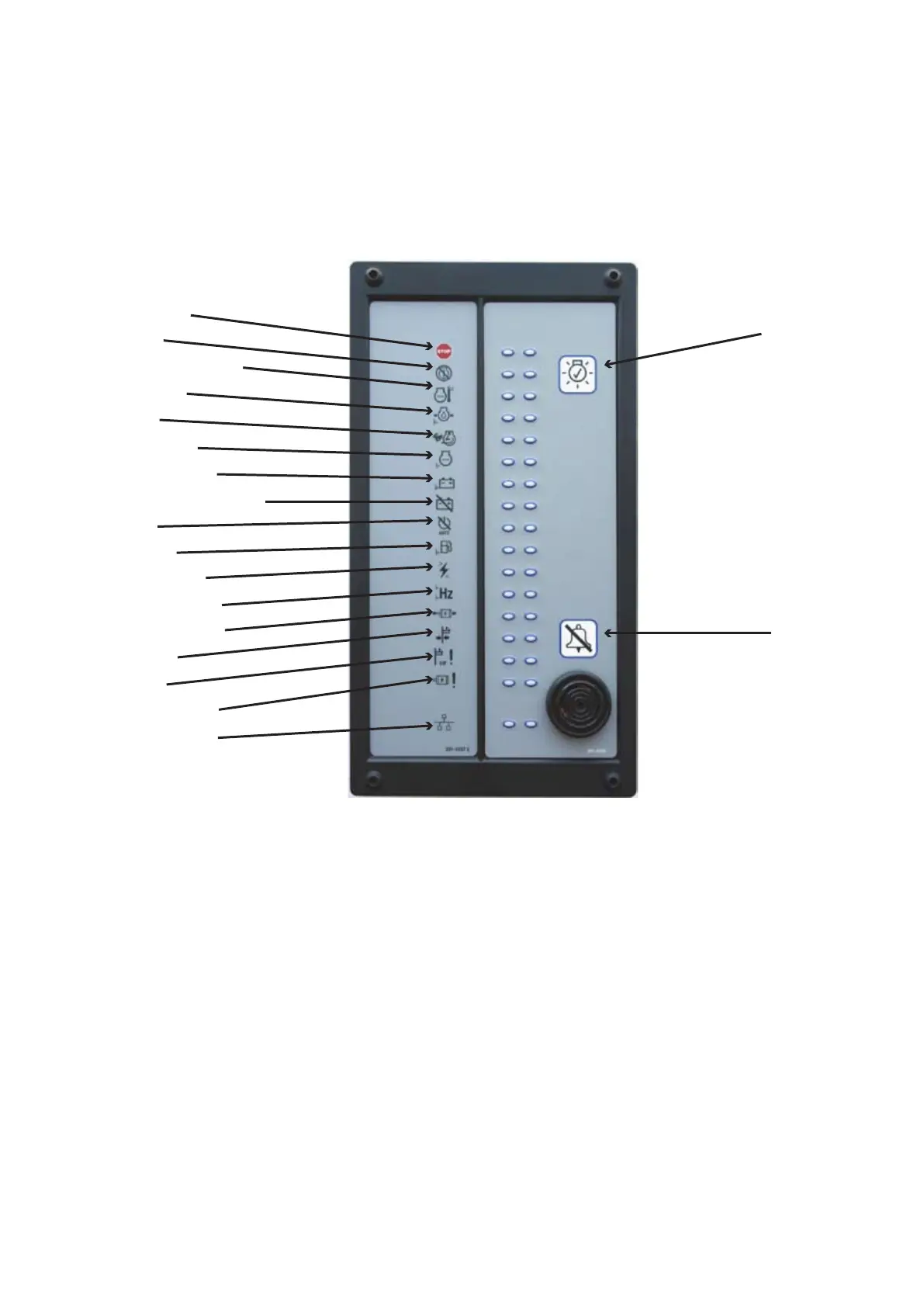 The PowerWizard Annunciator serves to display generating set system alarm conditions and status indications. The Annunciator
