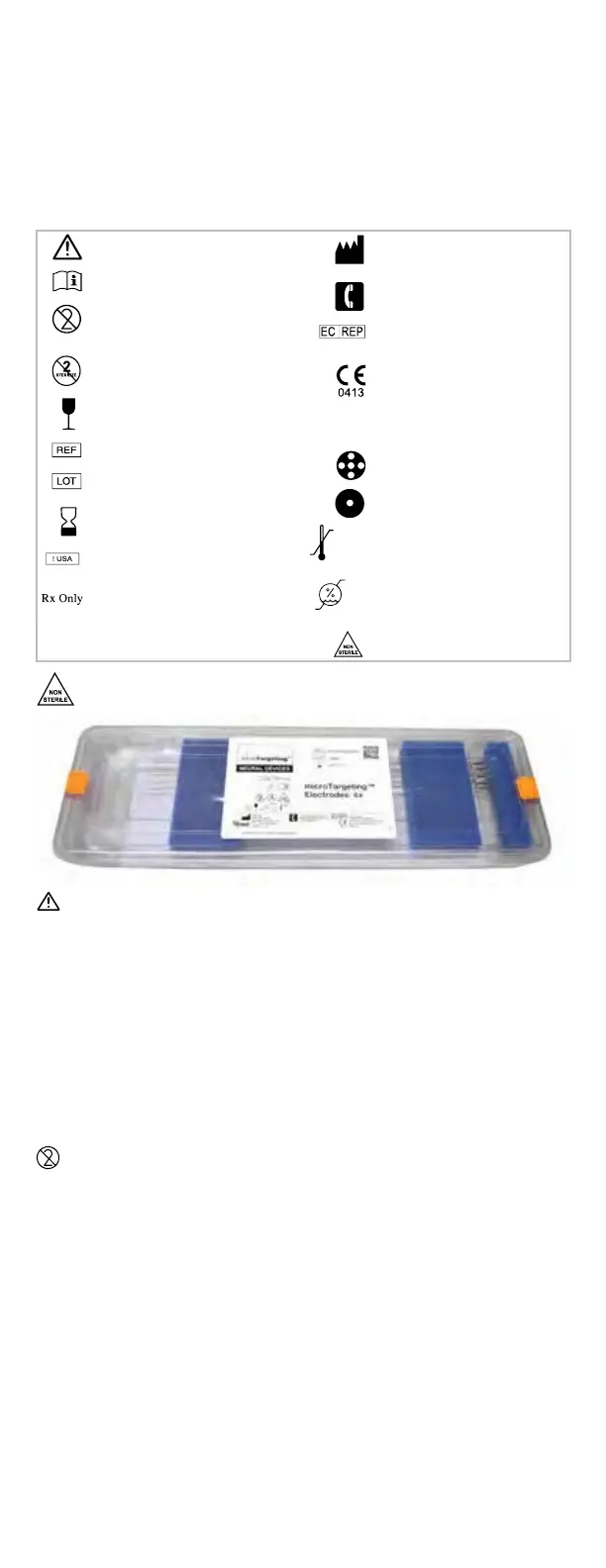 • Elektrodeja EI SAA yrittää steriloida tässä pakkauksessa. Ota microTargeting™-elektrodit pakkauksesta