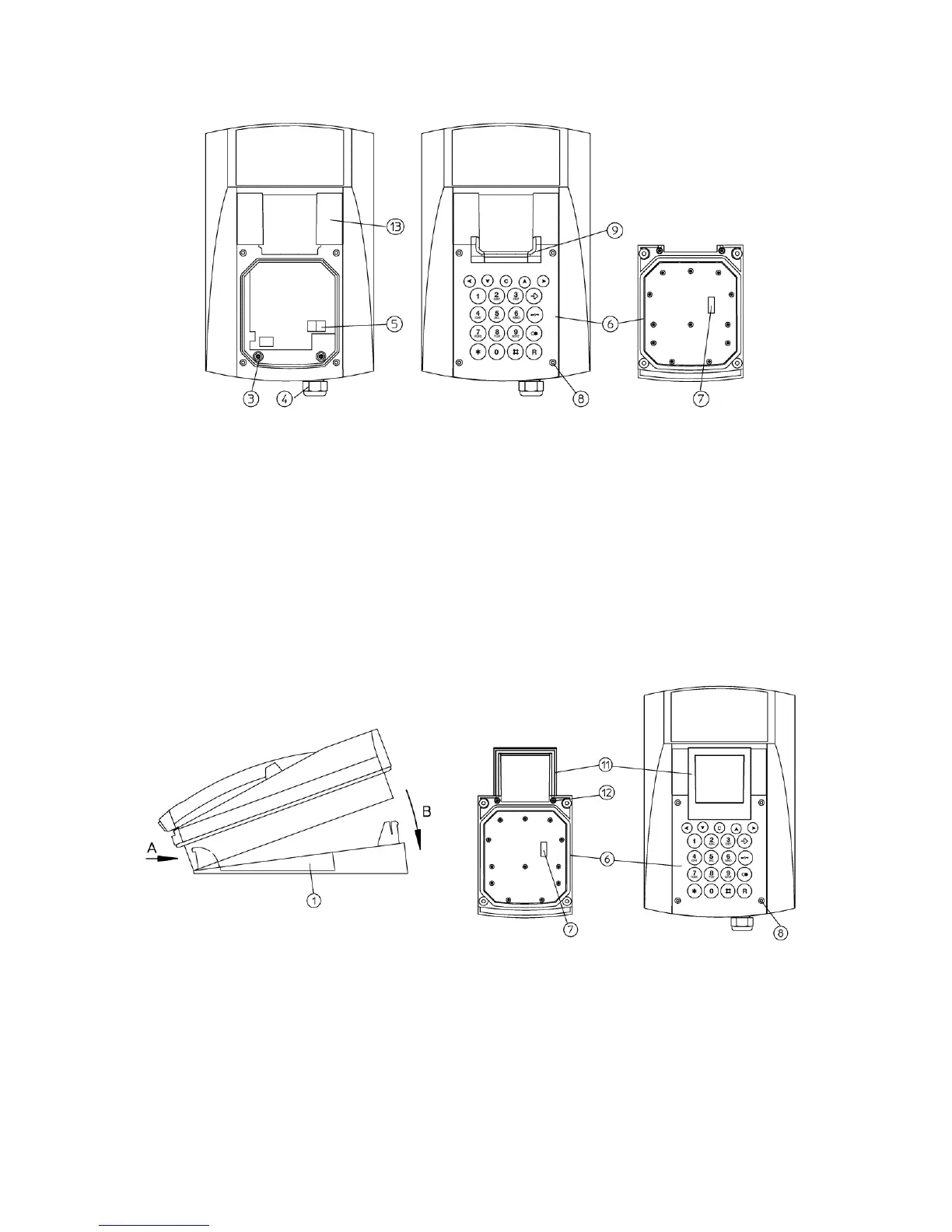 After loosening the two screws (12) on the bottom of the keypad plate you can remove the