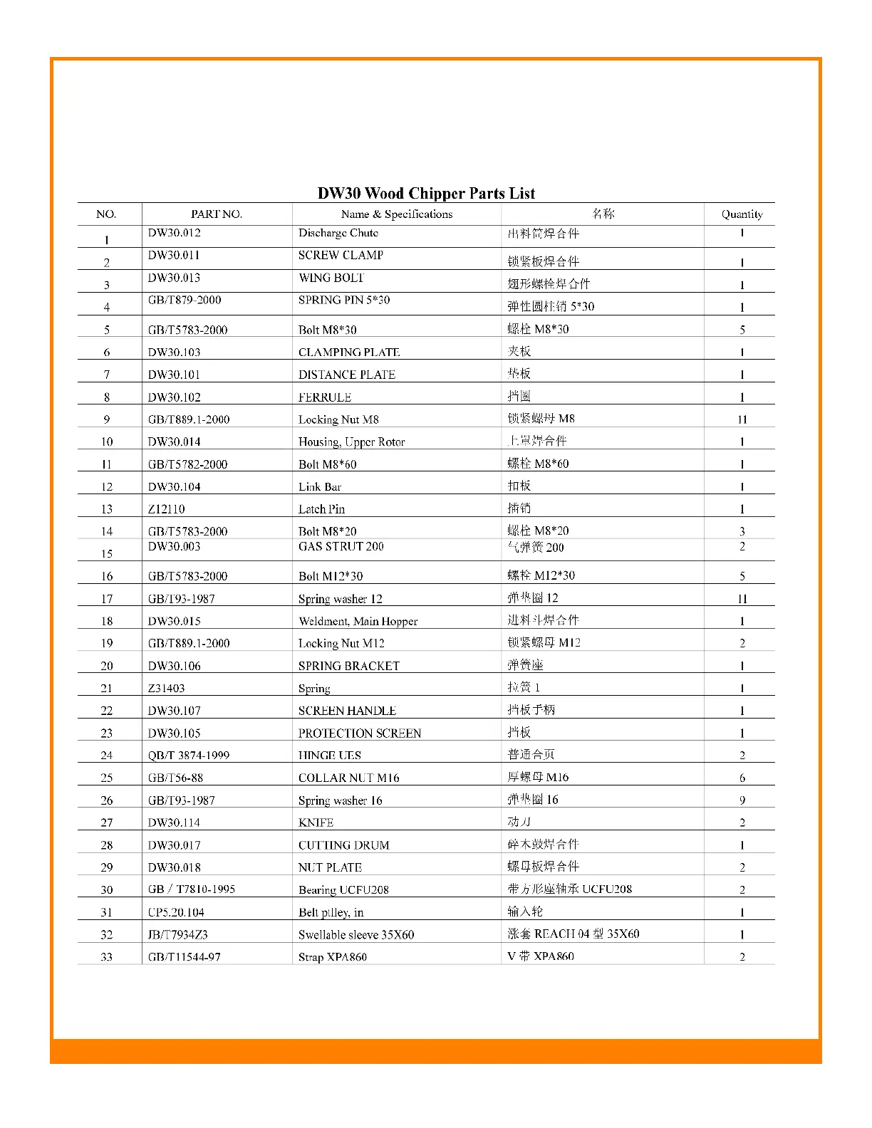 Farmer-Helper DW30 Chipper 33 Revision 09 - 2017