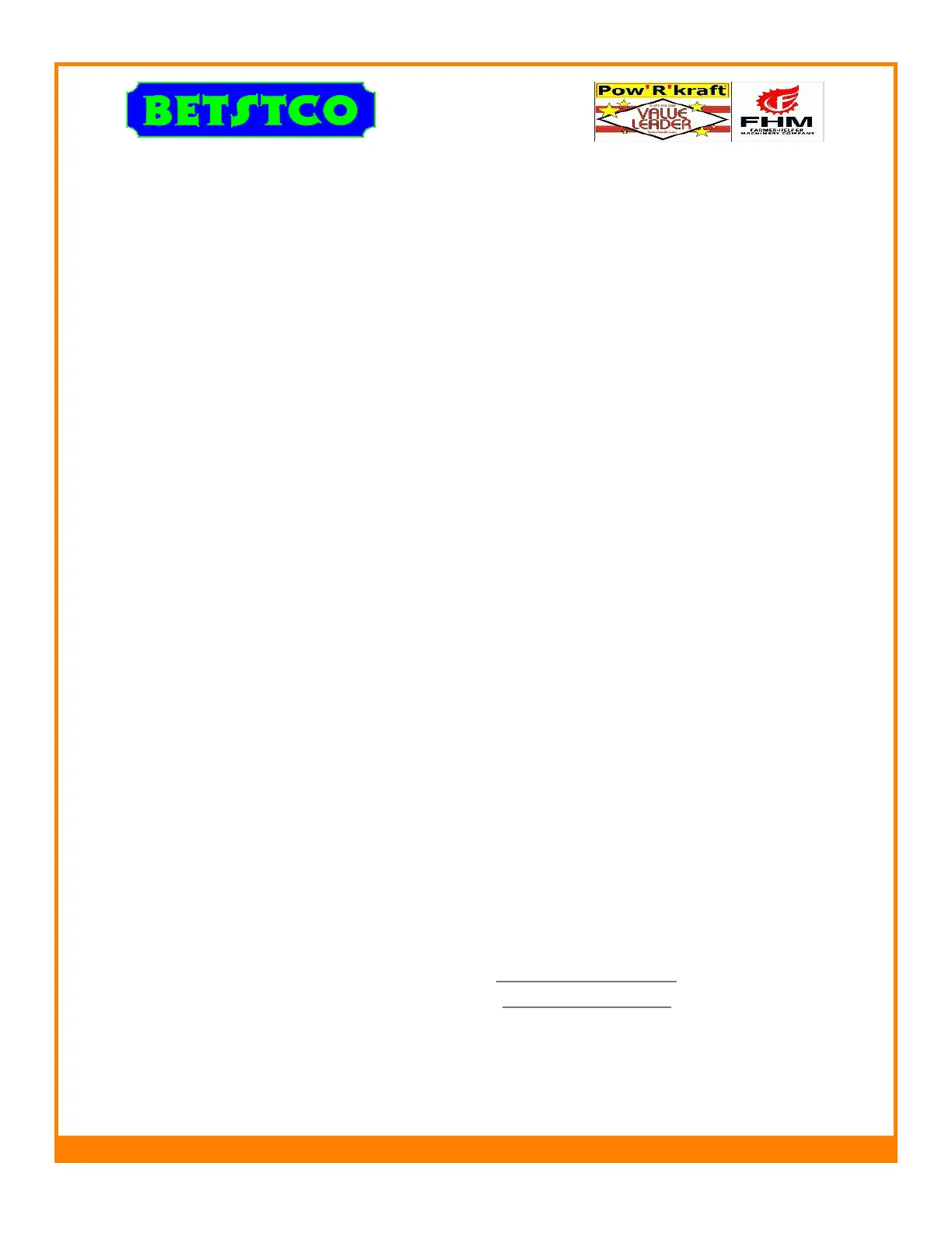 Betstco Invoice # _____________________________________________________