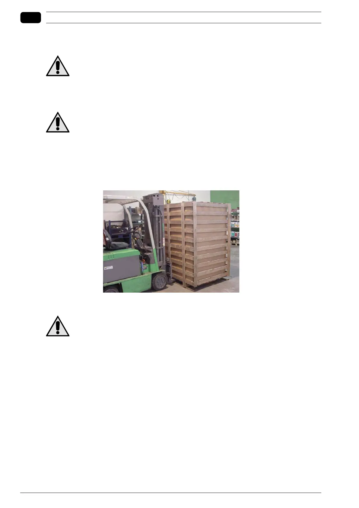 Before moving the machine ensure that the load-bearing capacity of the forklift truck is sufficient to take the