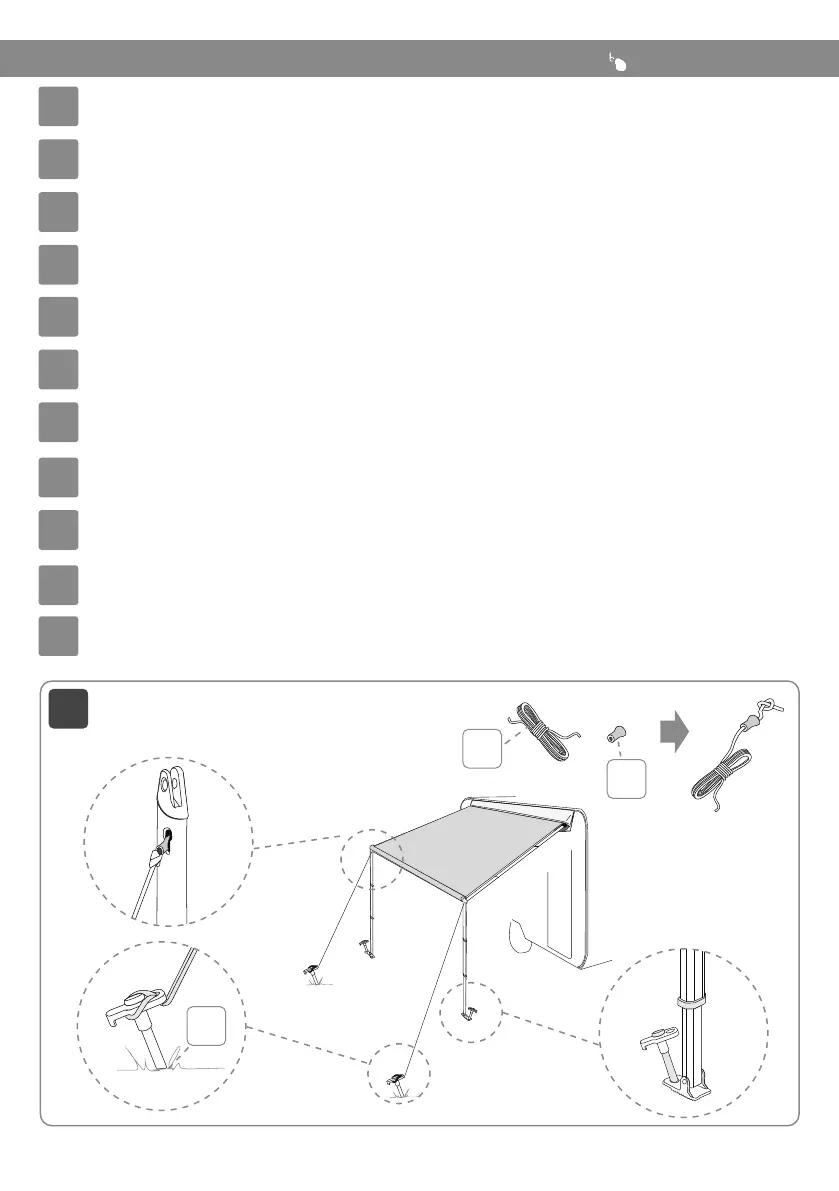 To avoid the awning being lifted up by an unexpected gust of wind, it is necessary to secure the legs to