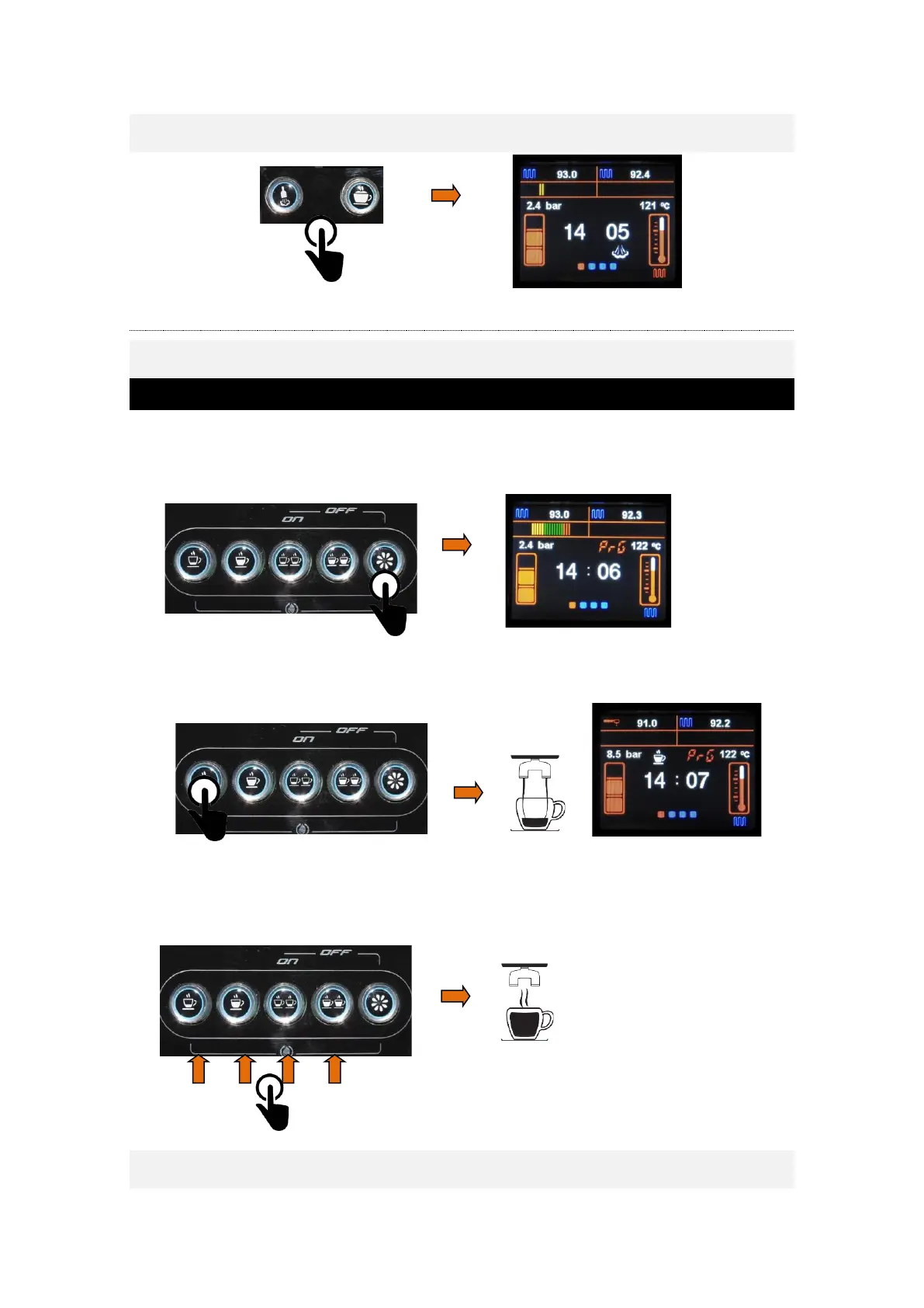 Durante la programación de un grupo, todos los botones así como la salida de vapor, quedan