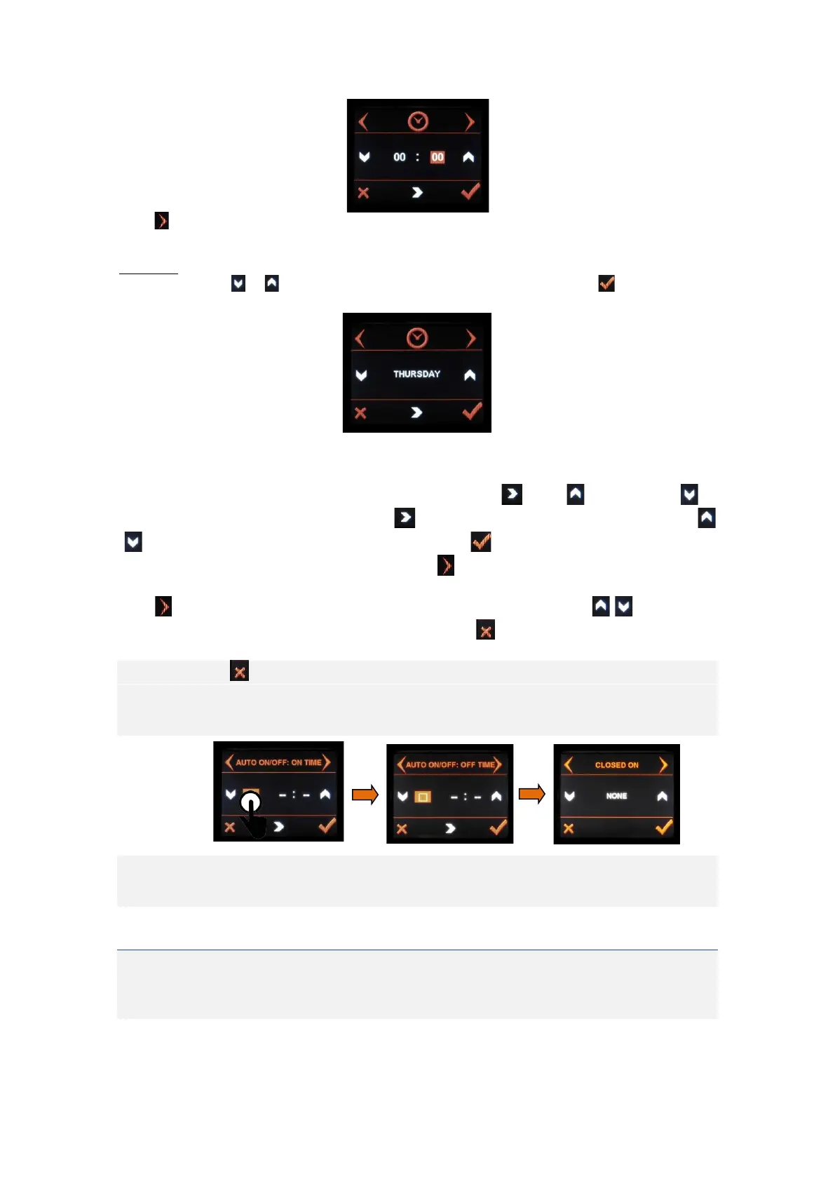the day. After having defined the AUTO ON/OFF times, press to leave the menu and go back to the