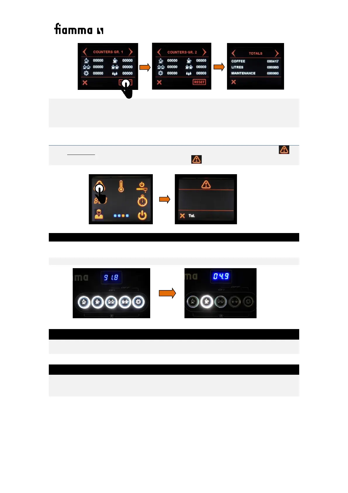 L’écran à 3 chiffres affiche la température du groupe quand la machine est en repos et affiche un