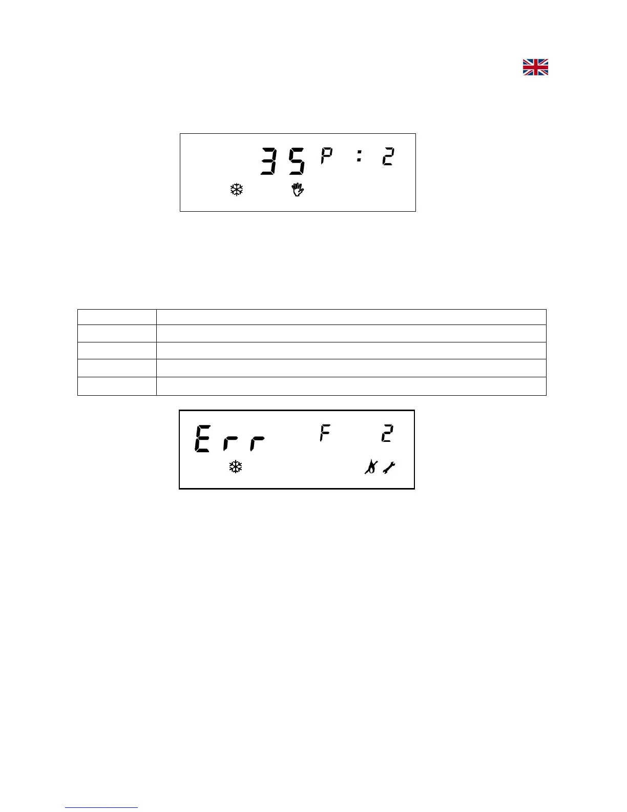 When a malfunction occurs, the writing “Err F X” appears, where X indicates the related