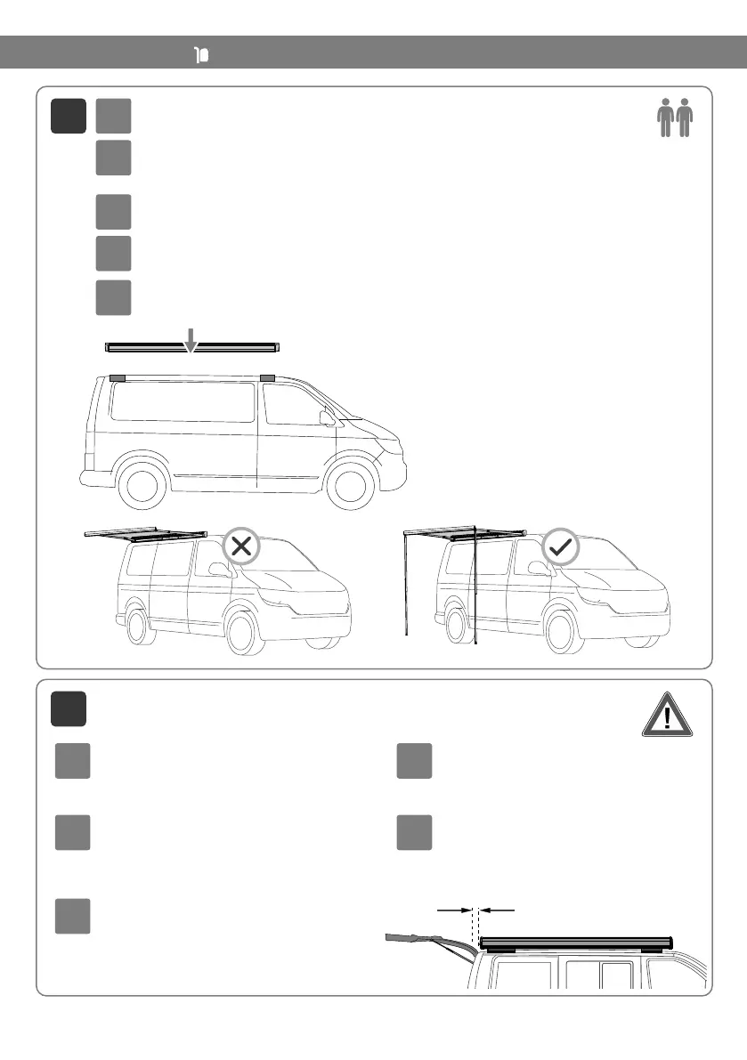 Carefully place the awning on the brackets, open it (taking great care as the