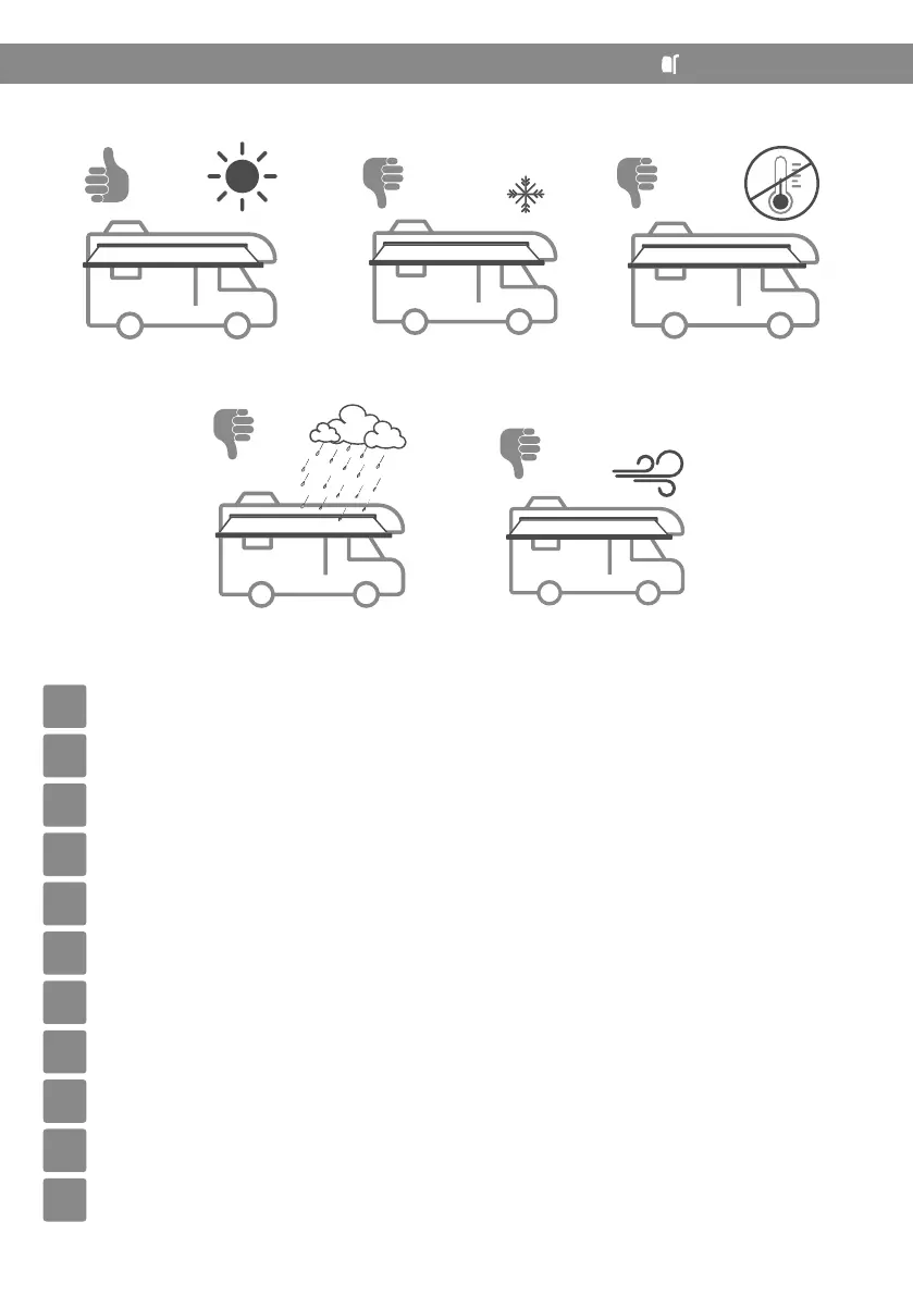 Lembrar-se de que o toldo foi concebido para se proteger do sol. Portanto, é aconselhável fechá-lo em