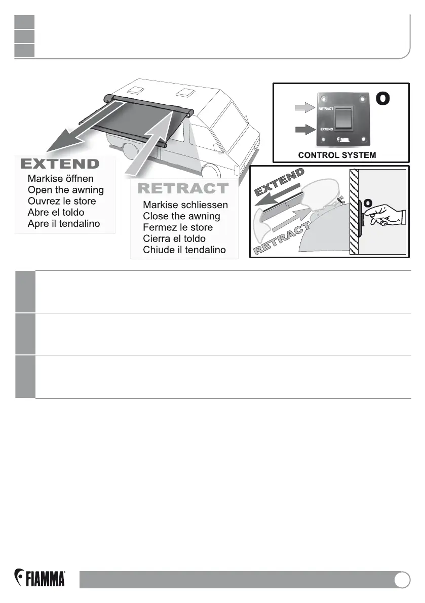 The Control system key opens or closes the awning; taking your finger away from