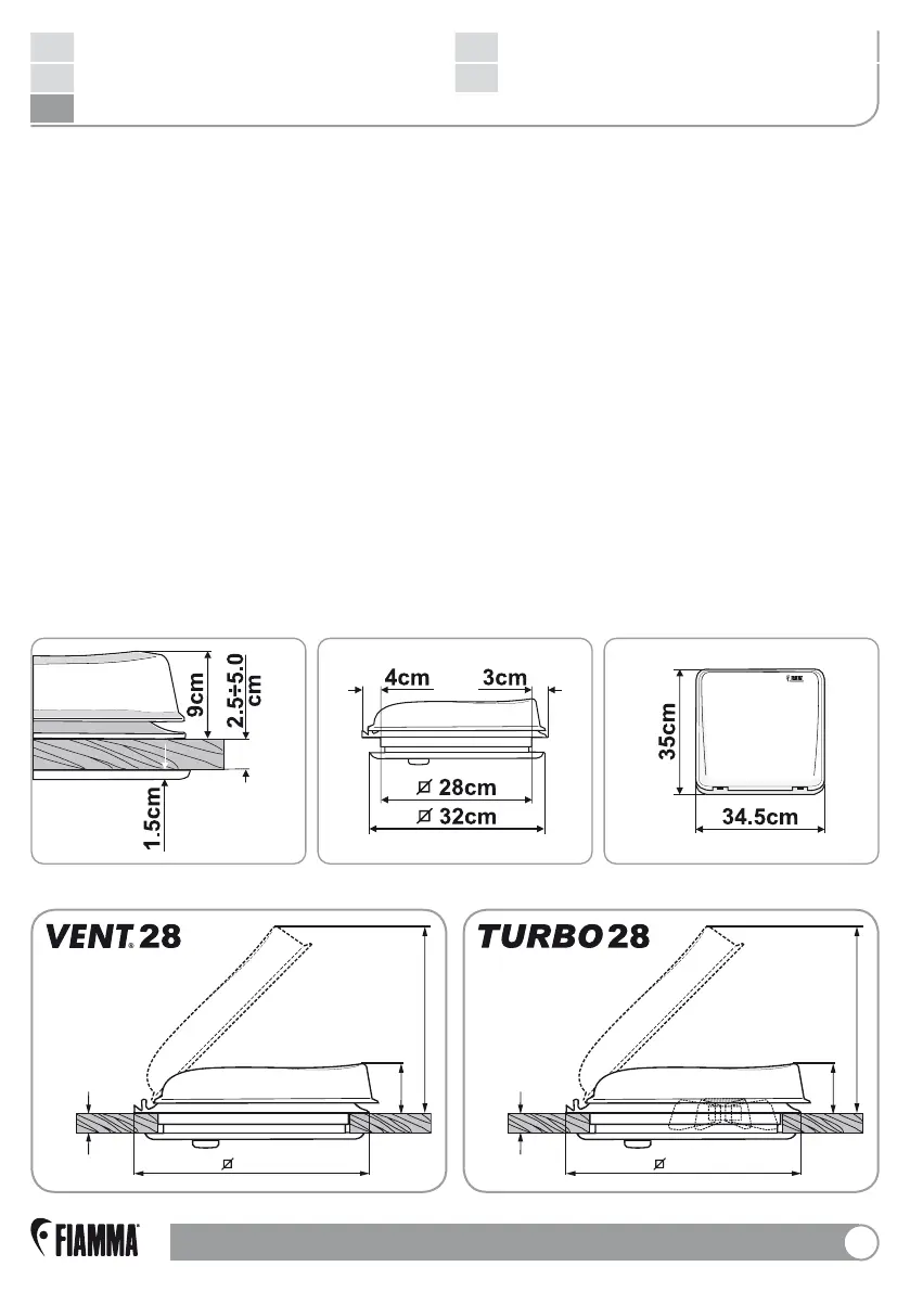 28cm. L’ oblò si installa su tetti con spessore compreso tra 25 e 50mm.