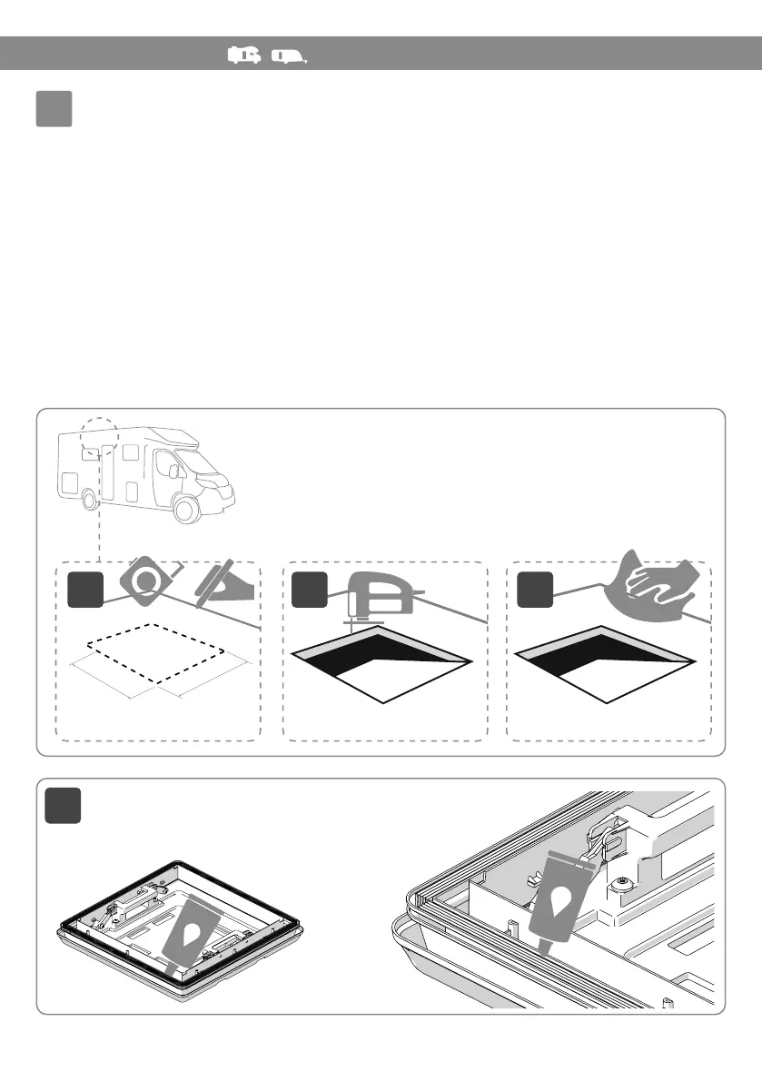 3) Pulire perfettamente la zona d’appoggio, porre sul tetto la parte esterna dell’oblò, inserire il telaio