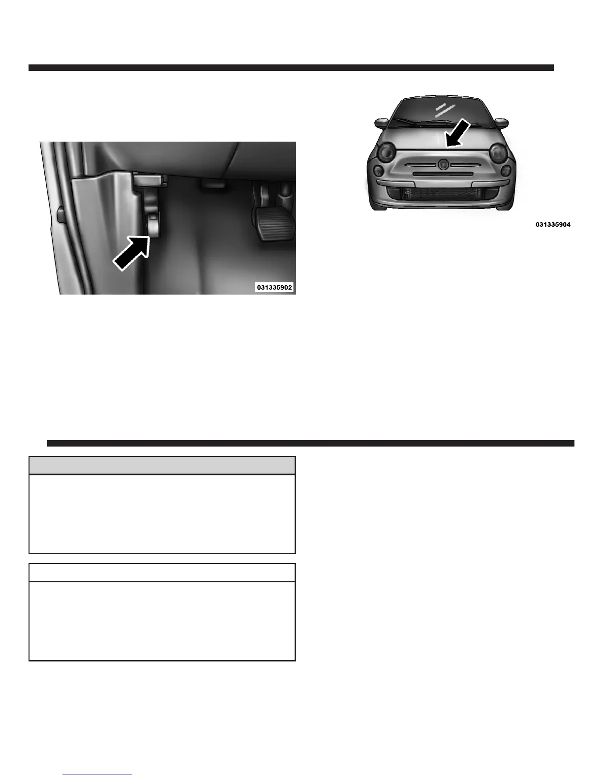 To open the hood, two latches must be released.