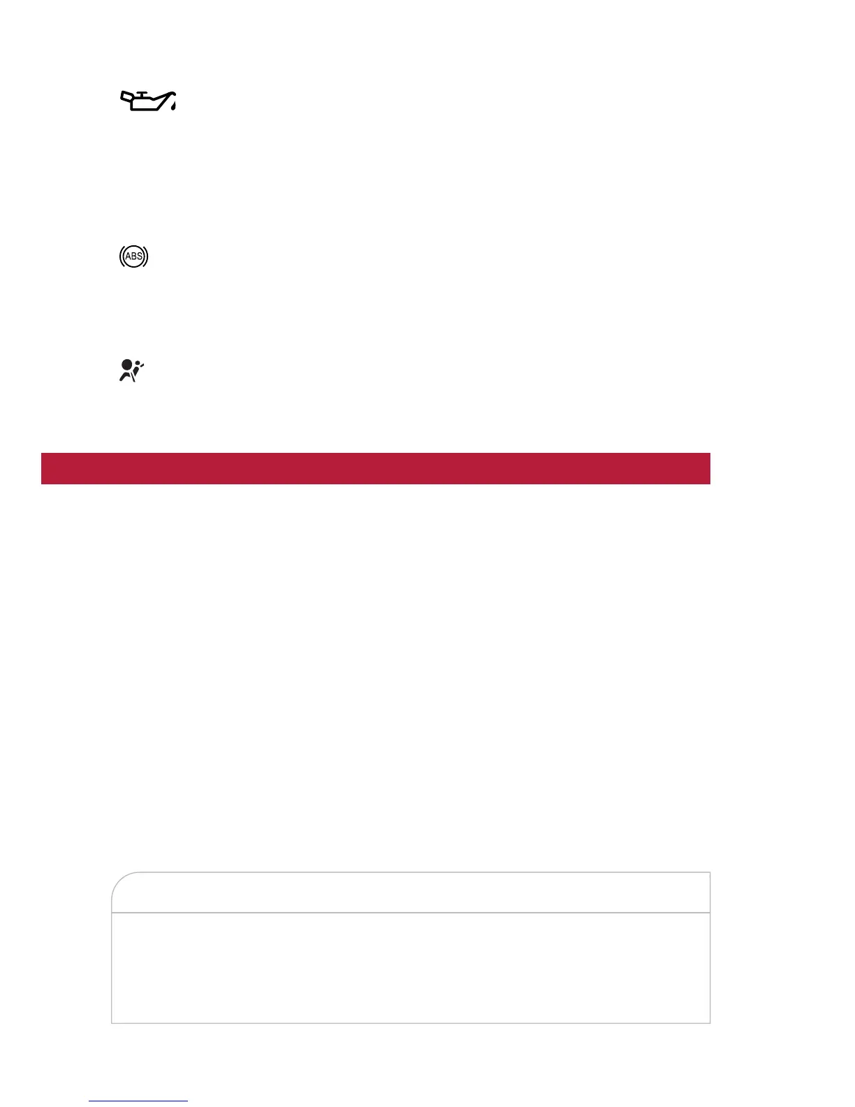 • This light indicates low engine oil pressure. If the light turns on while driving, stop the