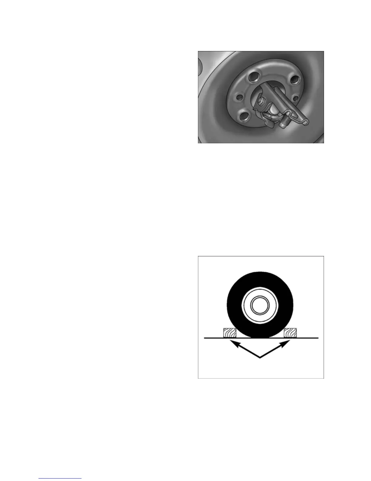 6. Block both the front and rear of the wheel diagonally opposite the jacking position.