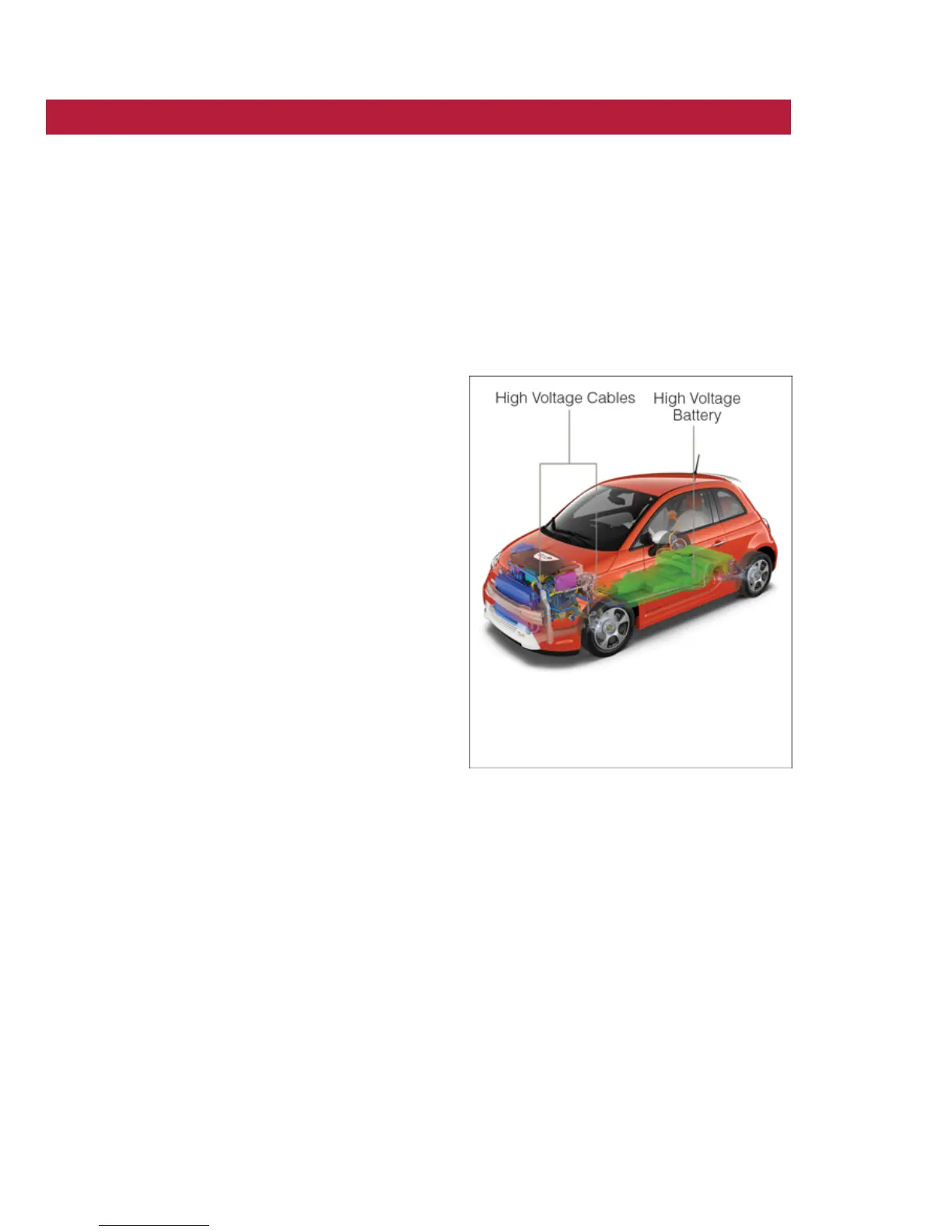 • Your 500e operates entirely on electricity stored in the high voltage battery. Unlike a