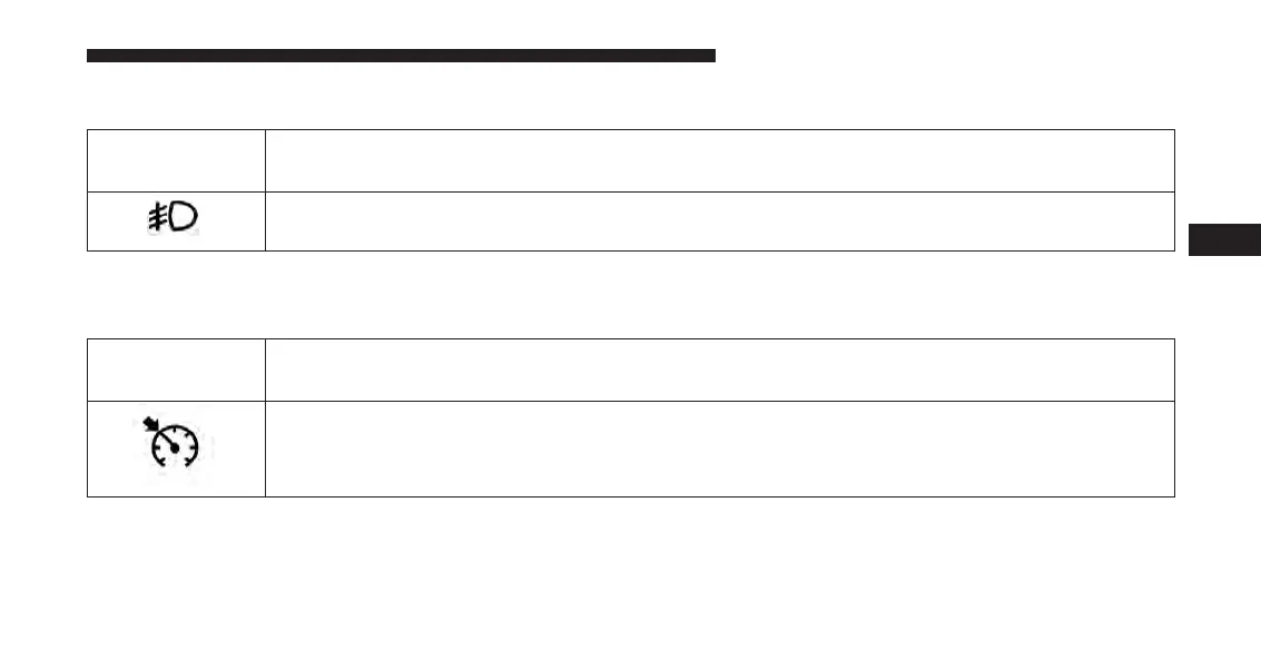 This indicator will illuminate when the front fog lights are on.