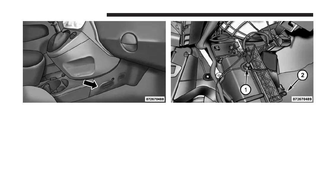 3. Remove the two 5.5 mm screws (1 and 2) that secure