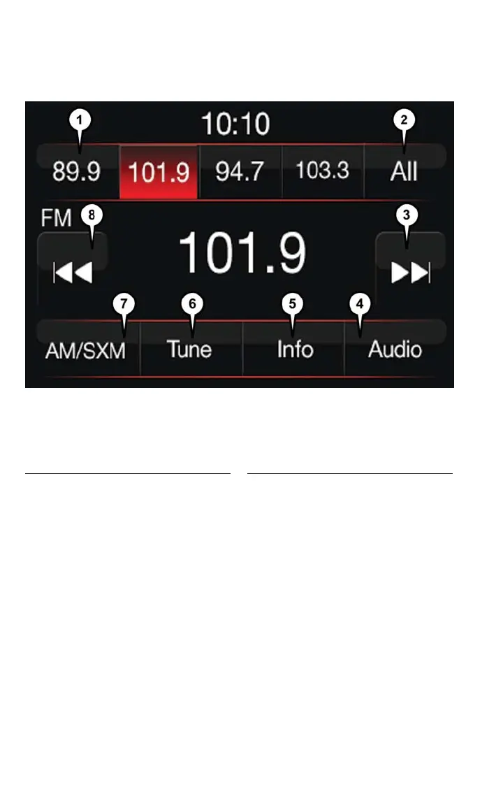 presets at the top of the radio screen. Pressing the “All” button on the touchscreen on
