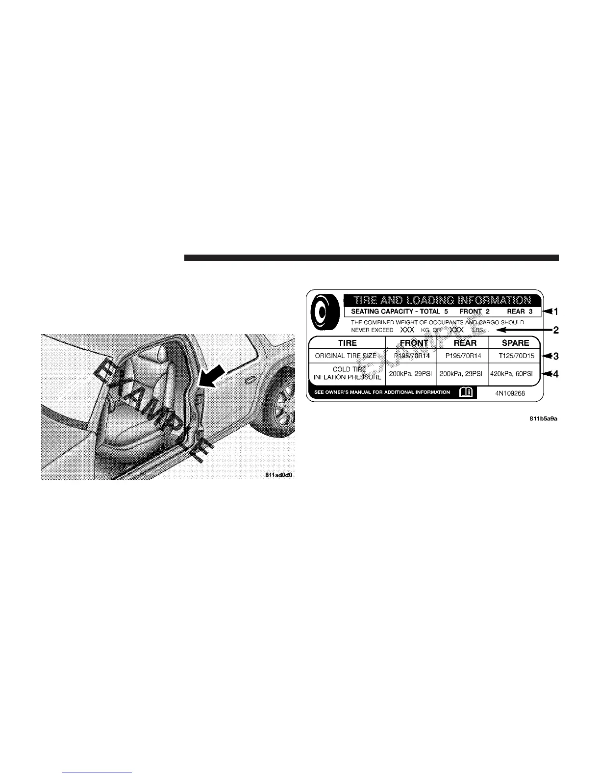 4) cold tire inflation pressures for the front, rear, and