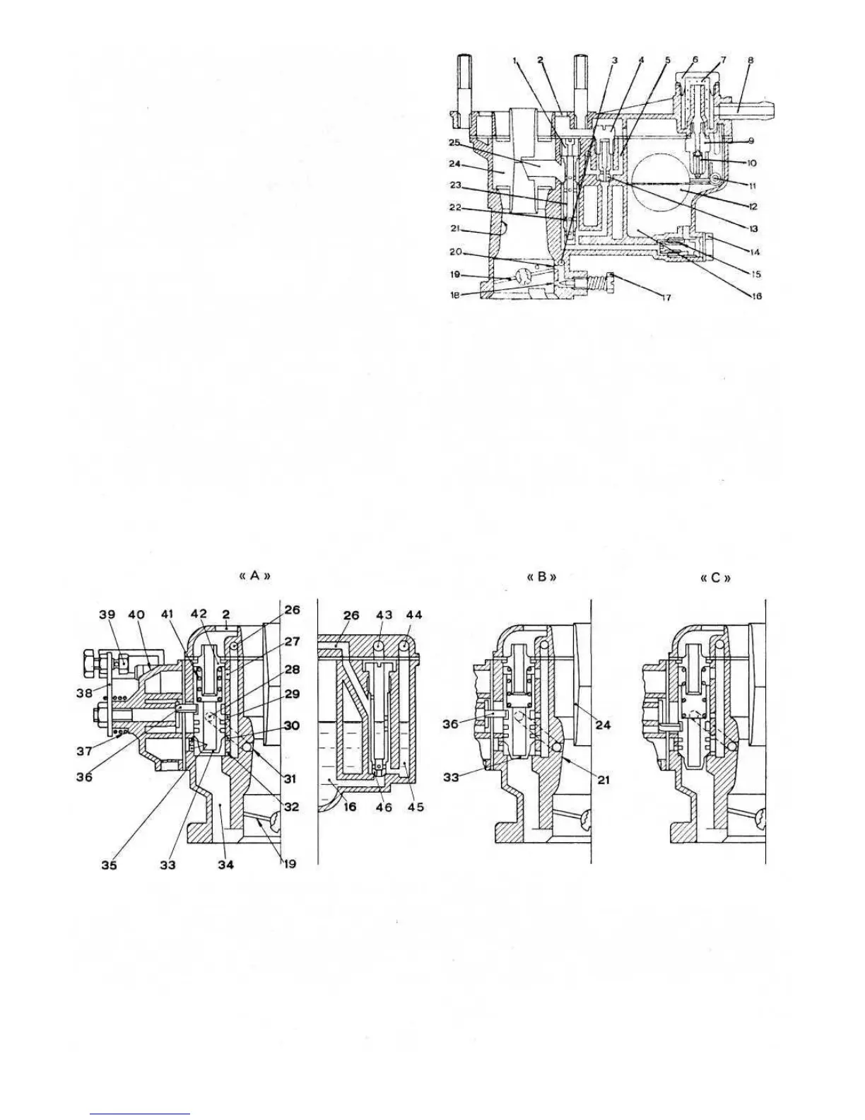 device control bowden 41 Starting valve spring 42 Spring casing. 43 Starting jet emulsion air orifice