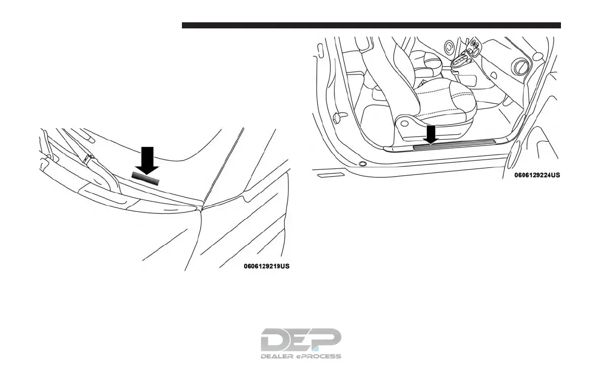 right front door sill, under the sill scuff plate, on an