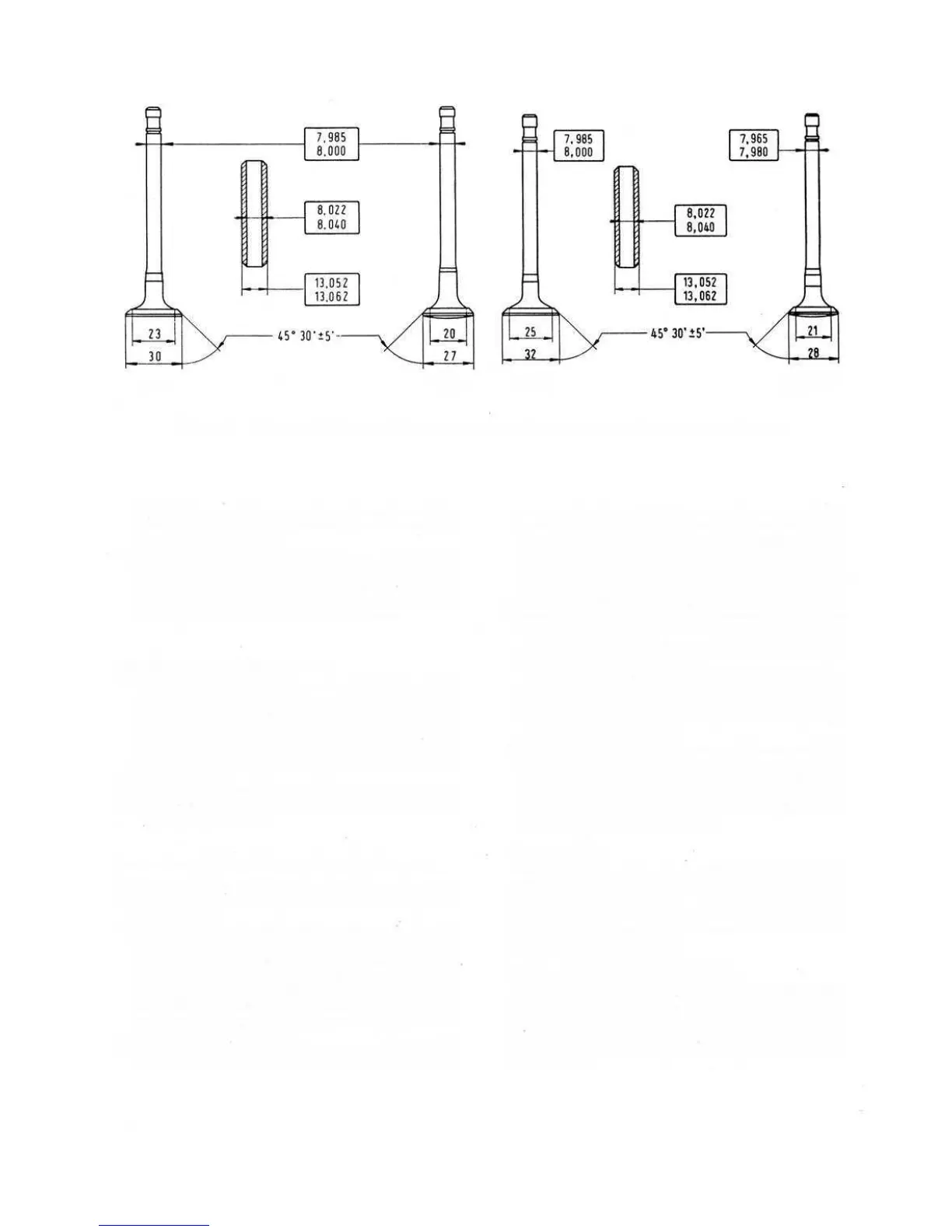 exhaust valves is 45° ± 5'.