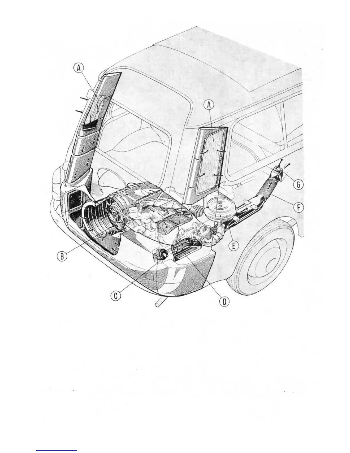 E Carburetter air cleaner F Duct, warmed air-to-car interior G Lever, air-to-car interior valve control