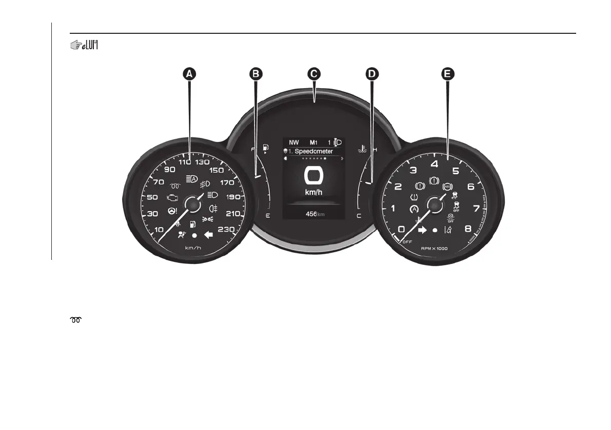 WARNING The illumination of the instrument panel graphics may vary according to version.