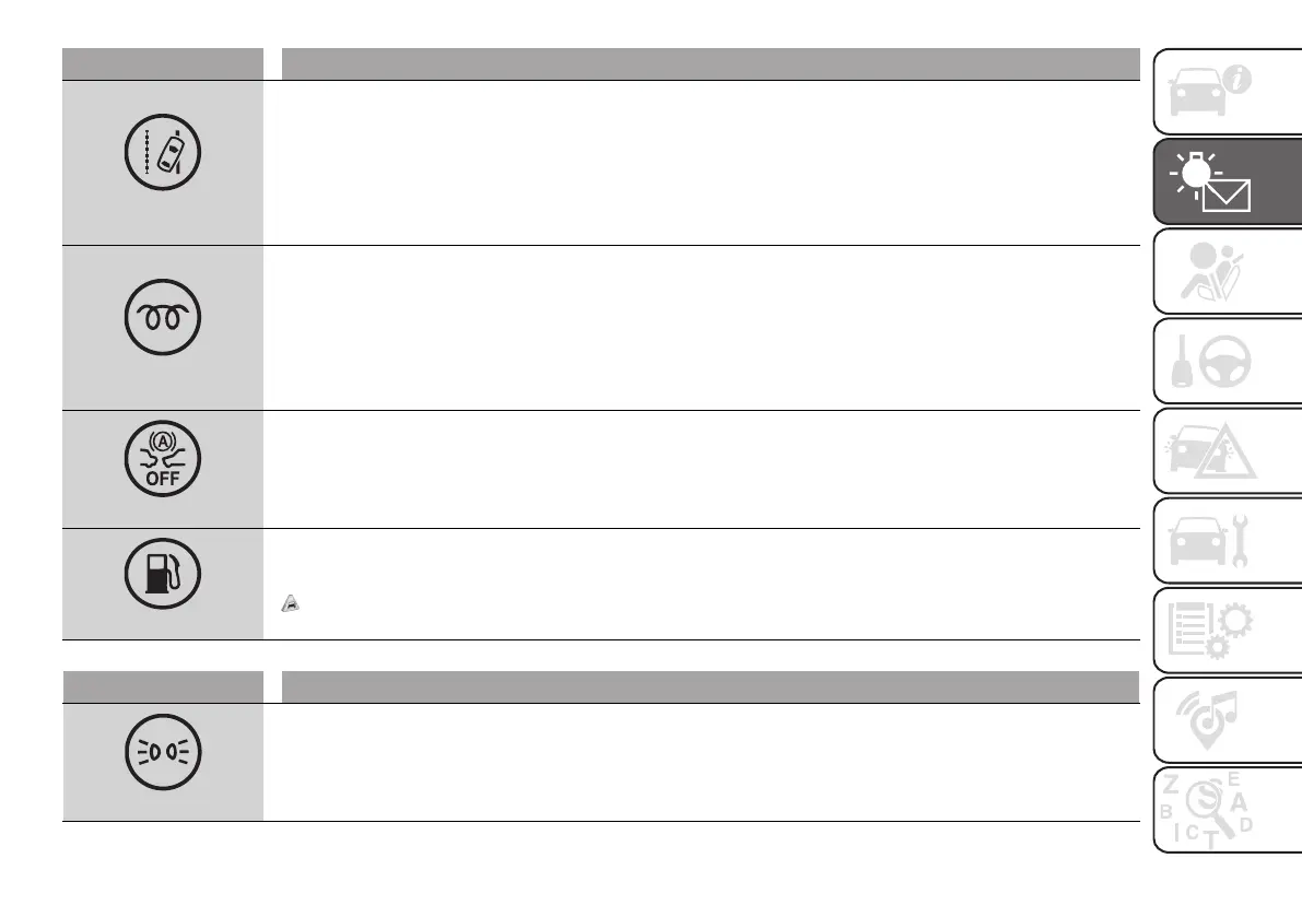 The warning light switches on when the side lights or dipped headlights are turned on.