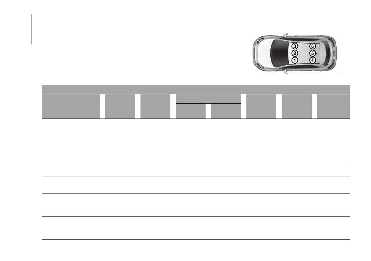 The following table provides guidelines on positioning child restraint systems on the vehicle