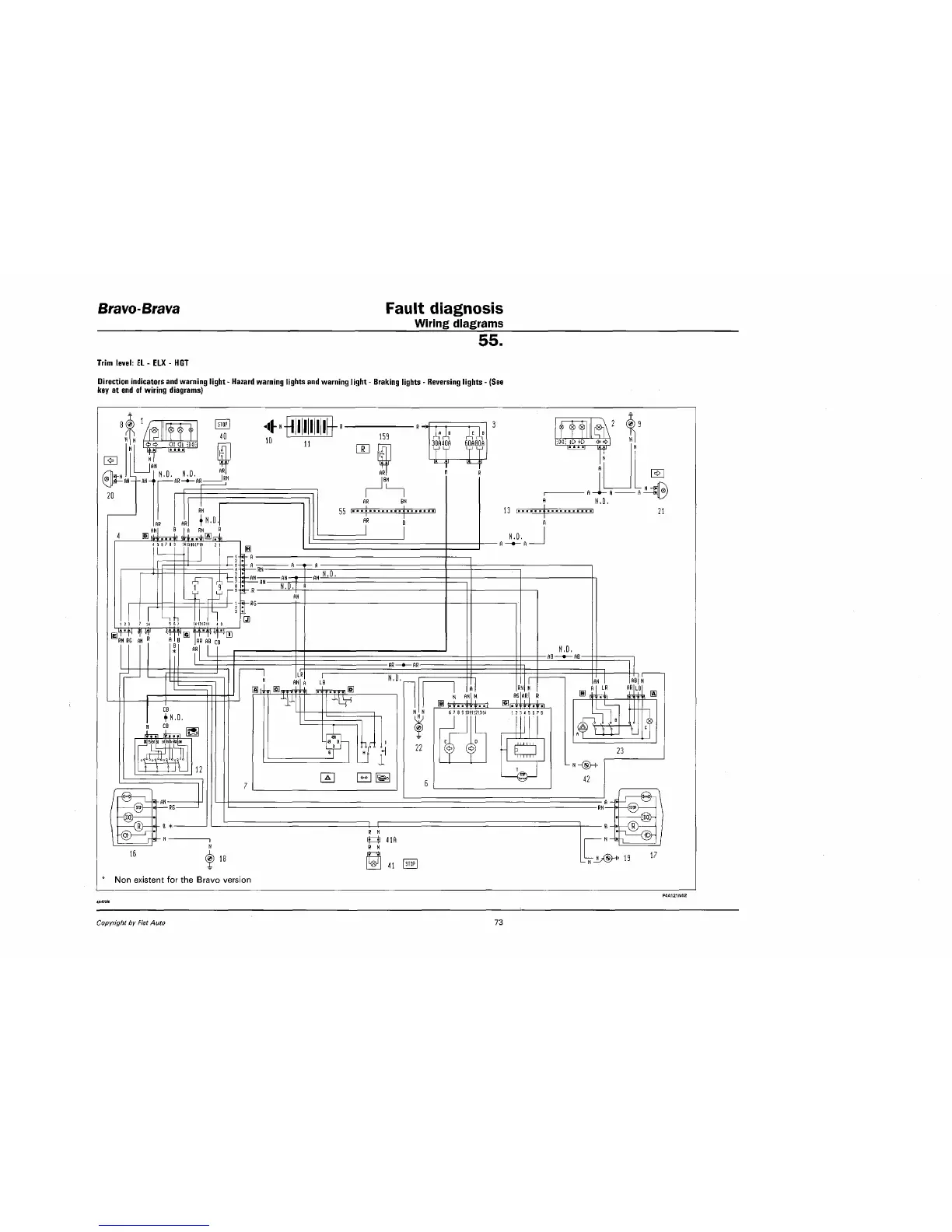 Fiat Brava - Trim Level: el - ELX - HGT; Direction Indicators and Warning Light - Hazard Warning Lights and Warning Light - Braking Lights - Reversing Lights