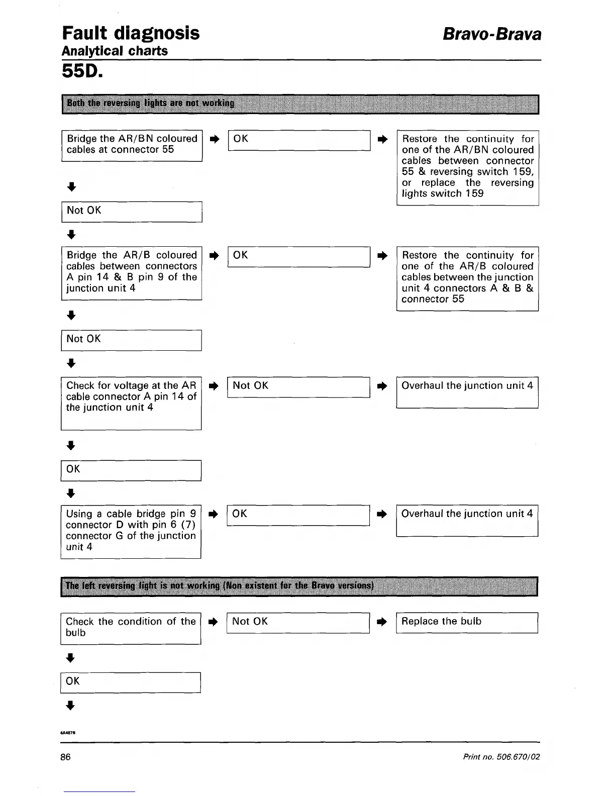 The left reversing light is not working (Non existent for the Bravo versions)