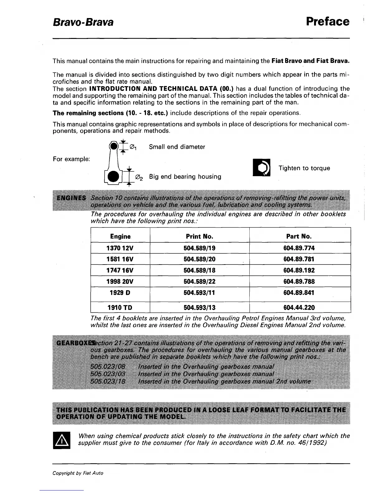 This manual contains the main instructions for repairing and maintaining the Fiat Bravo and Fiat Brava.