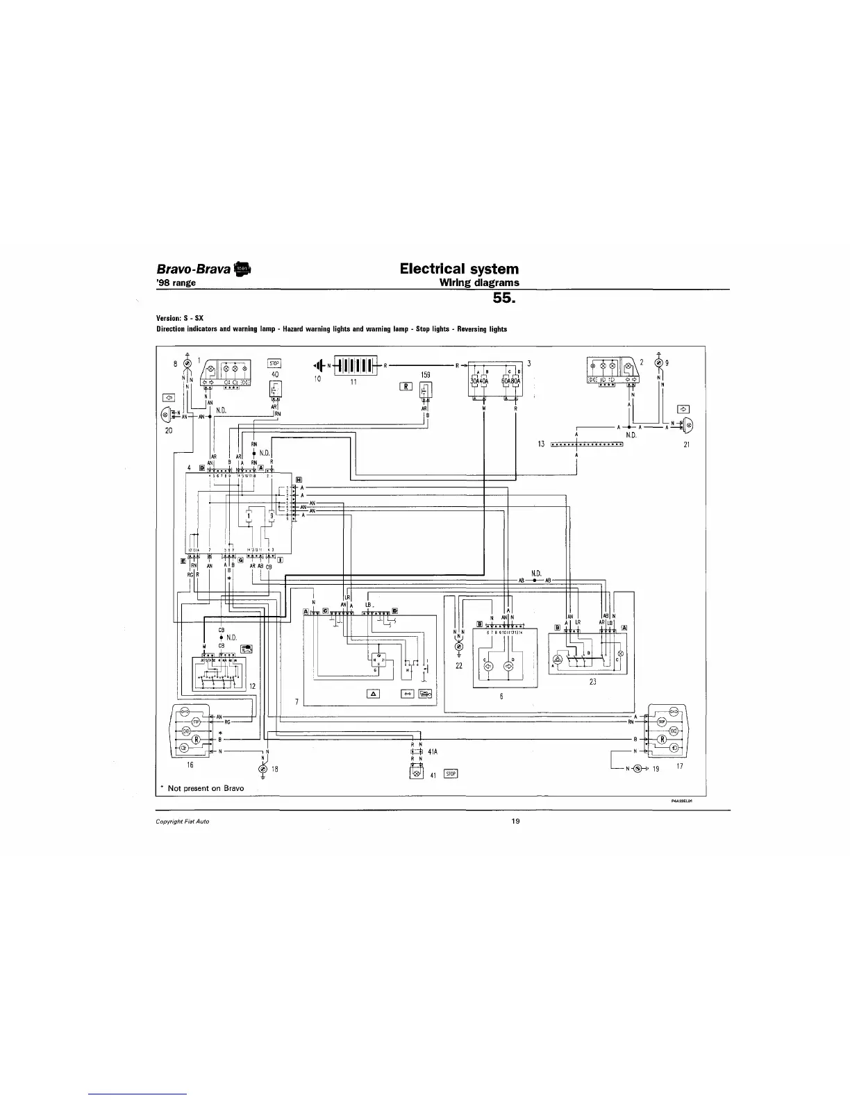 Fiat Brava - Ersion: S - SX; Direction Indicators and Warning Lamp - Hazard Warning Lights and Warning Lamp - Stop Lights - Reversing Lights 19 19 19 19 21
