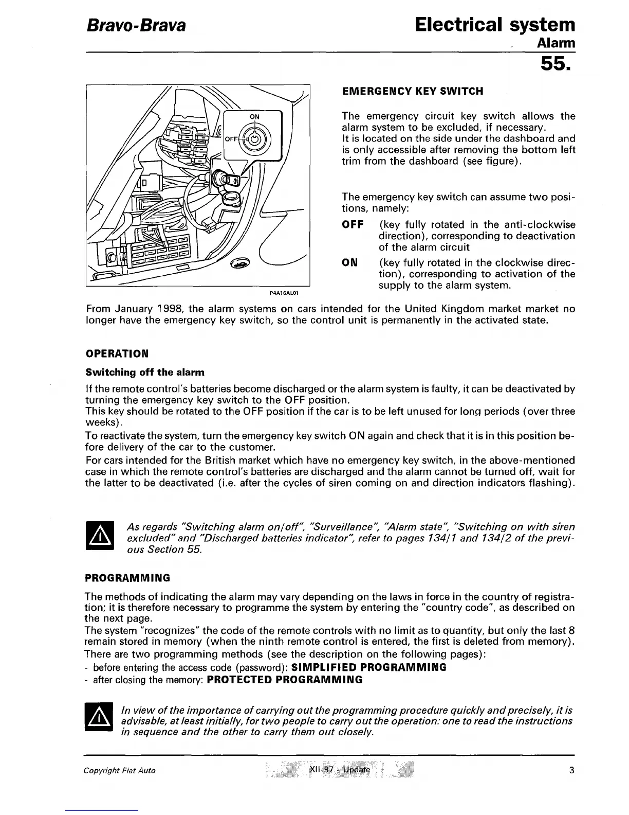 From January 1998, the alarm systems on cars intended for the United Kingdom market market no