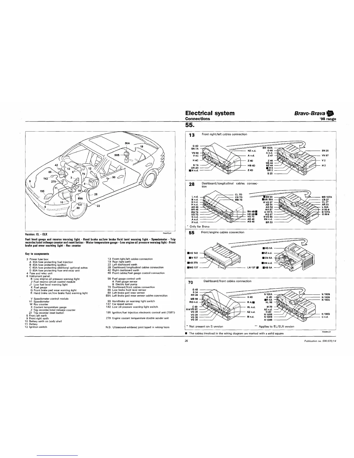 70 Dashboard/front cables connection