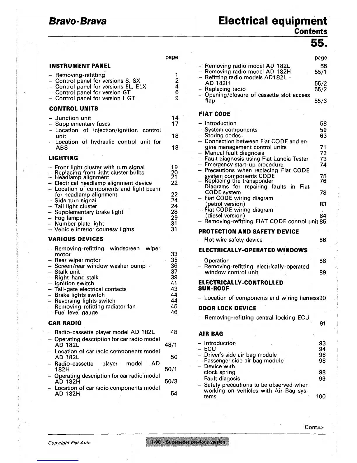 Copyright Fiat Auto 11-98 - Supersedes previous version