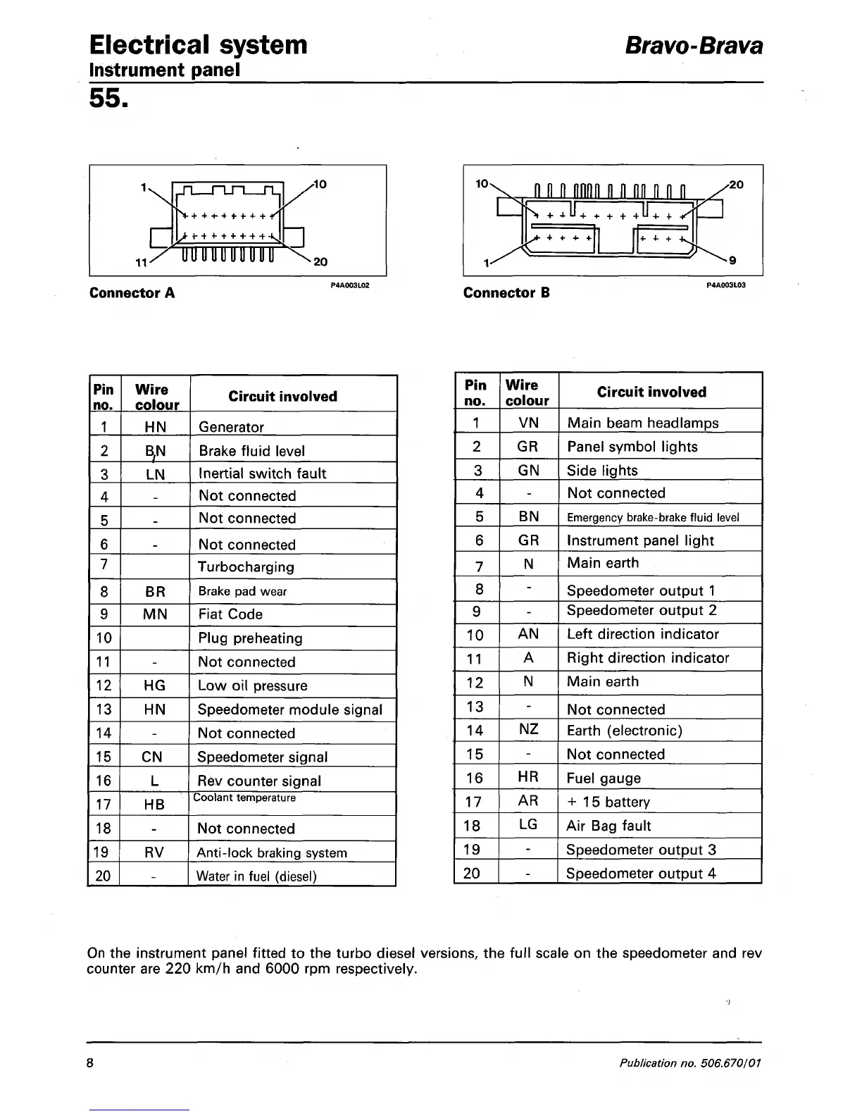 On the instrument panel fitted to the turbo diesel versions, the full scale on the speedometer and rev