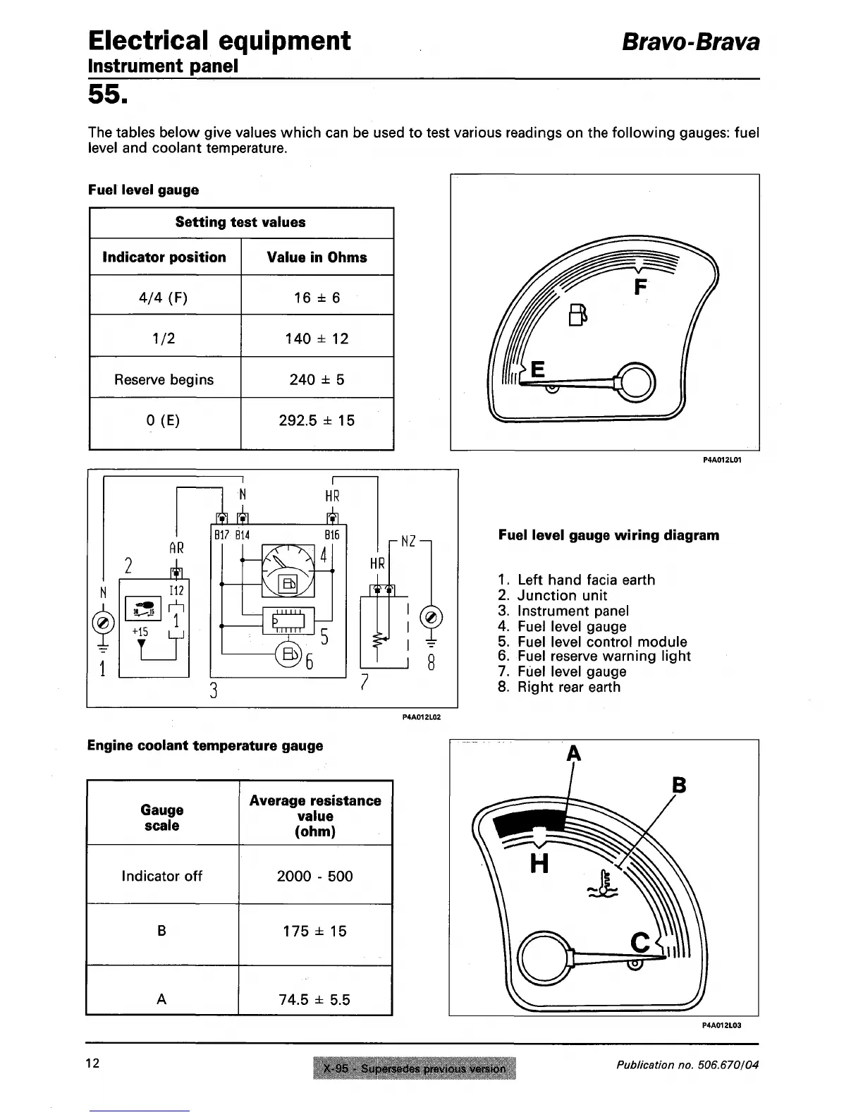 The tables below give values which can be used to test various readings on the following gauges: fuel