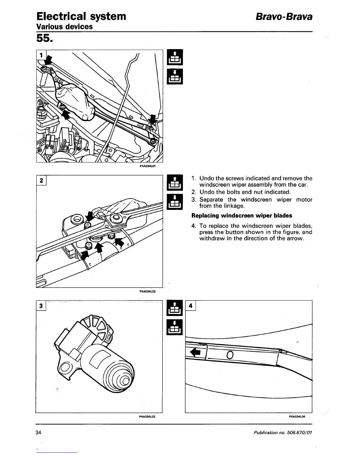 3. Separate the windscreen wiper motor