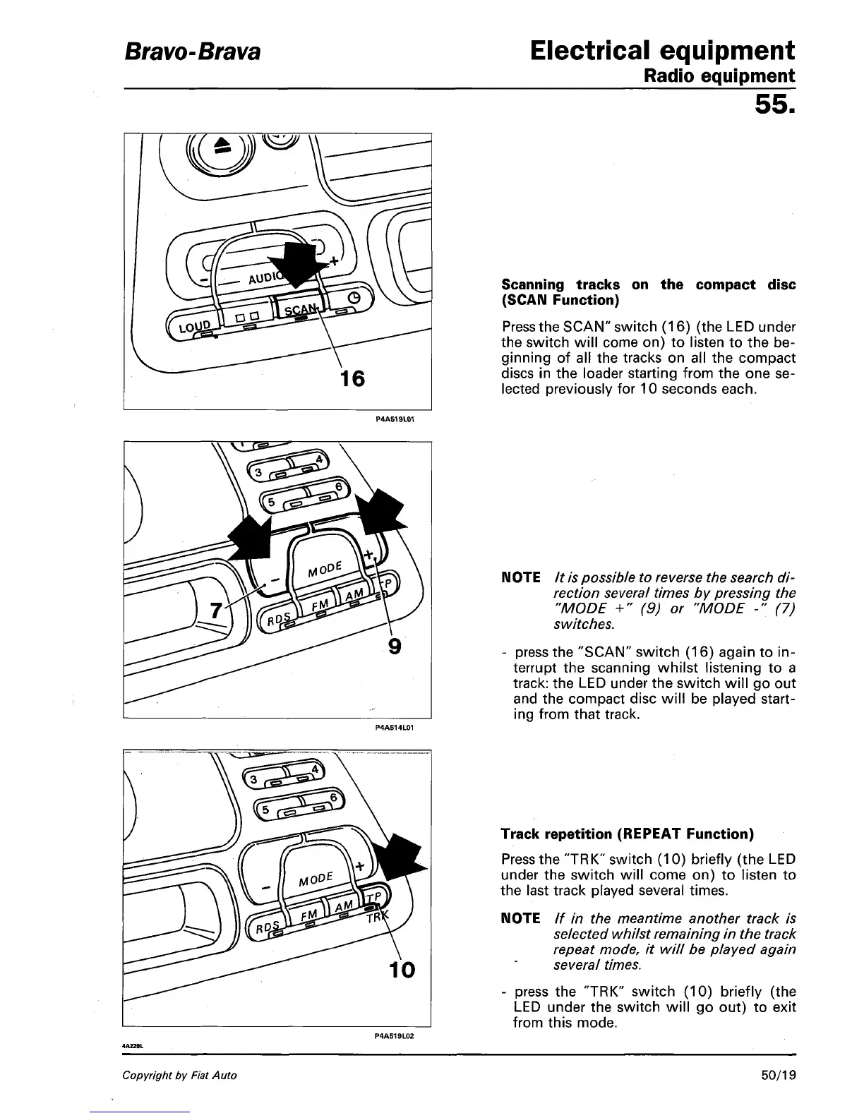 - press the "SCAN" switch (16) again to in-