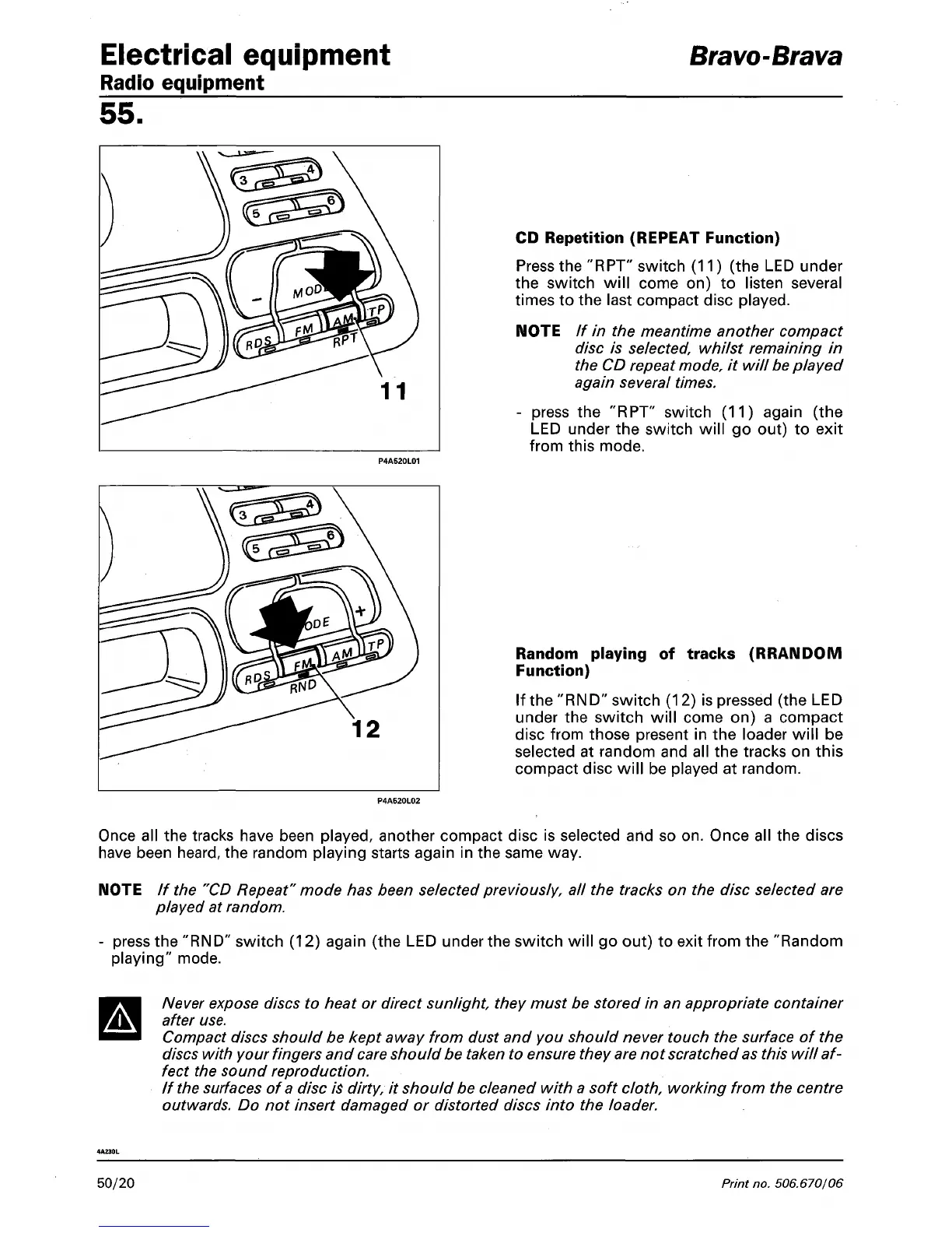 NOTE If the "CD Repeat" mode has been selected previously, all the tracks on the disc selected are