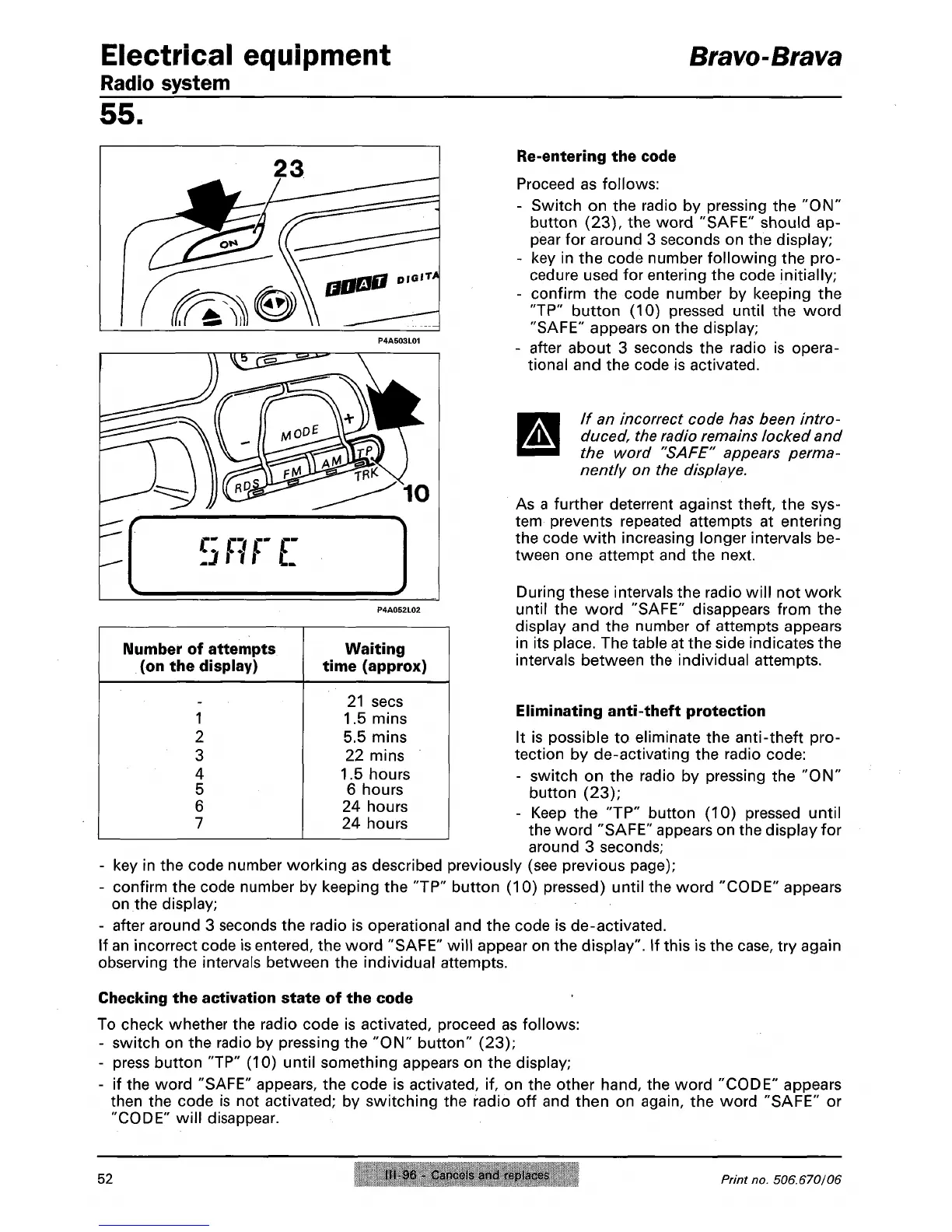 then the code is not activated; by switching the radio off and then on again, the word "SAFE" or