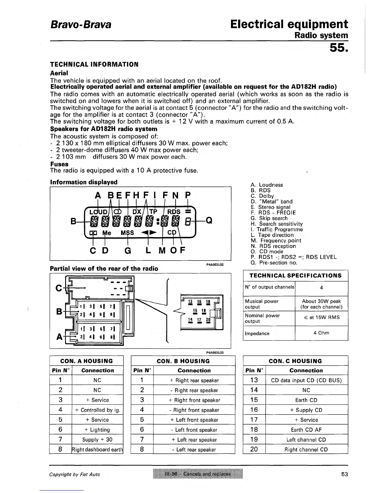 The switching voltage for the aerial is at contact 5 (connector "A") for the radio and the switching volt-