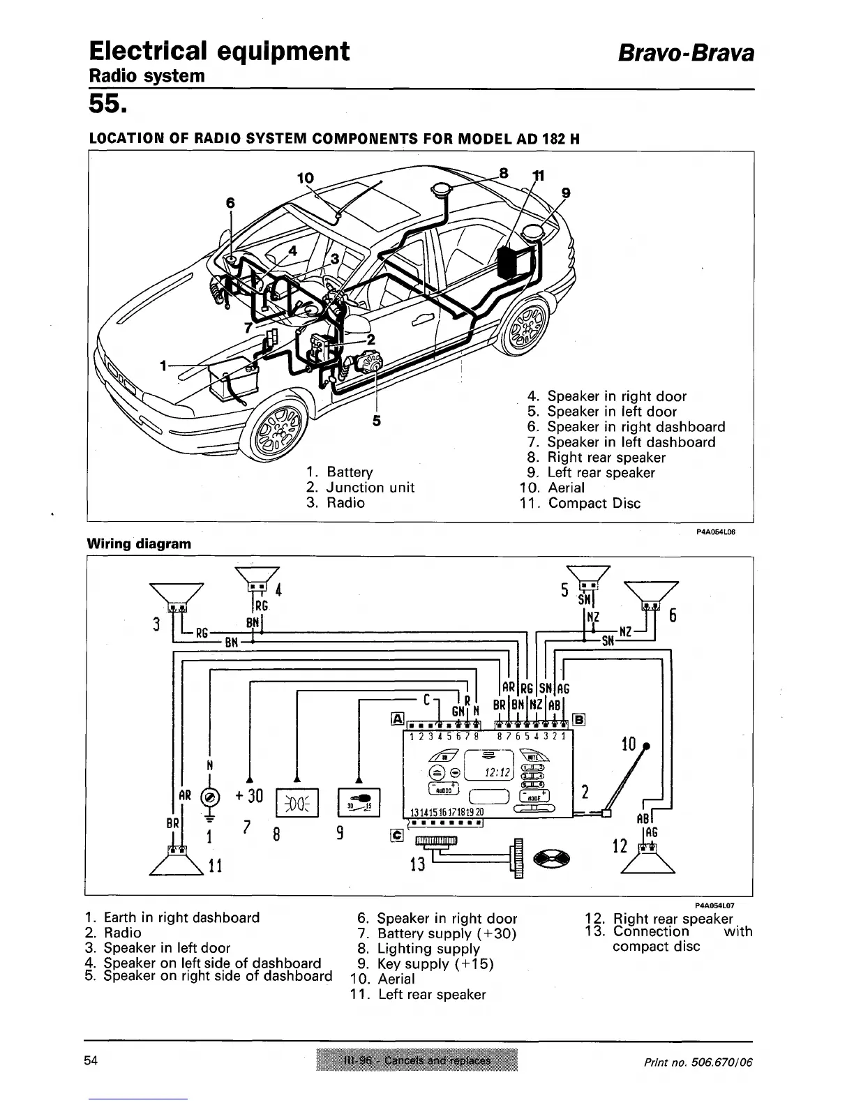 LOCATION OF RADIO SYSTEM COMPONENTS FOR MODEL AD 182 H