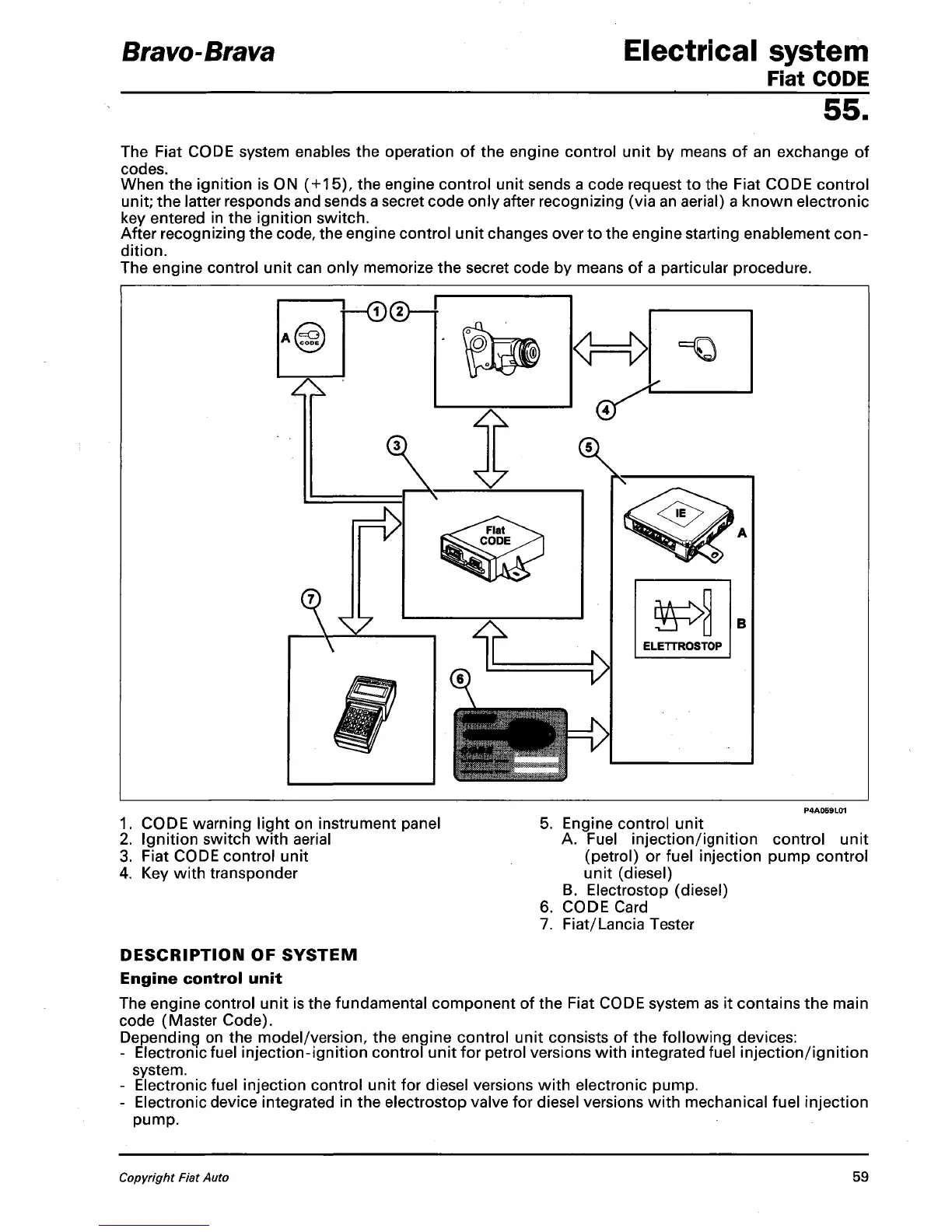The Fiat CODE system enables the operation of the engine control unit by means of an exchange of
