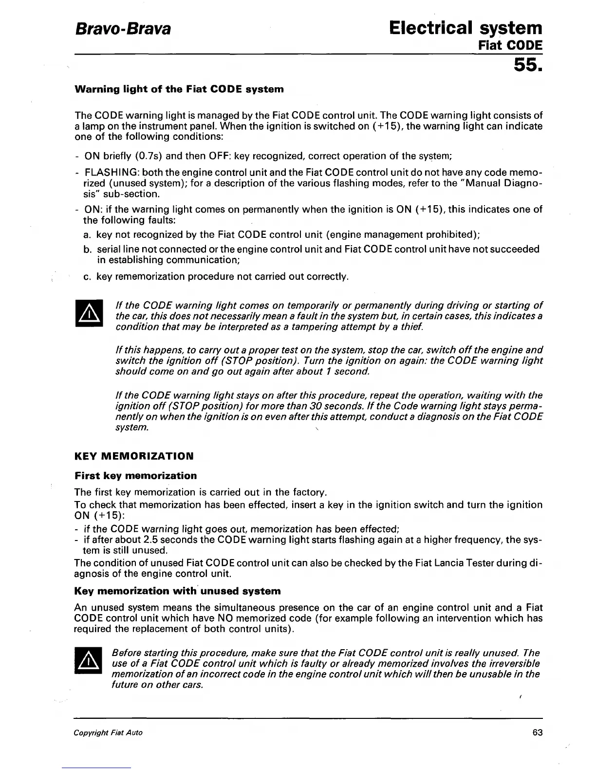 Before starting this procedure, make sure that the Fiat CODE control unit is really unused. The